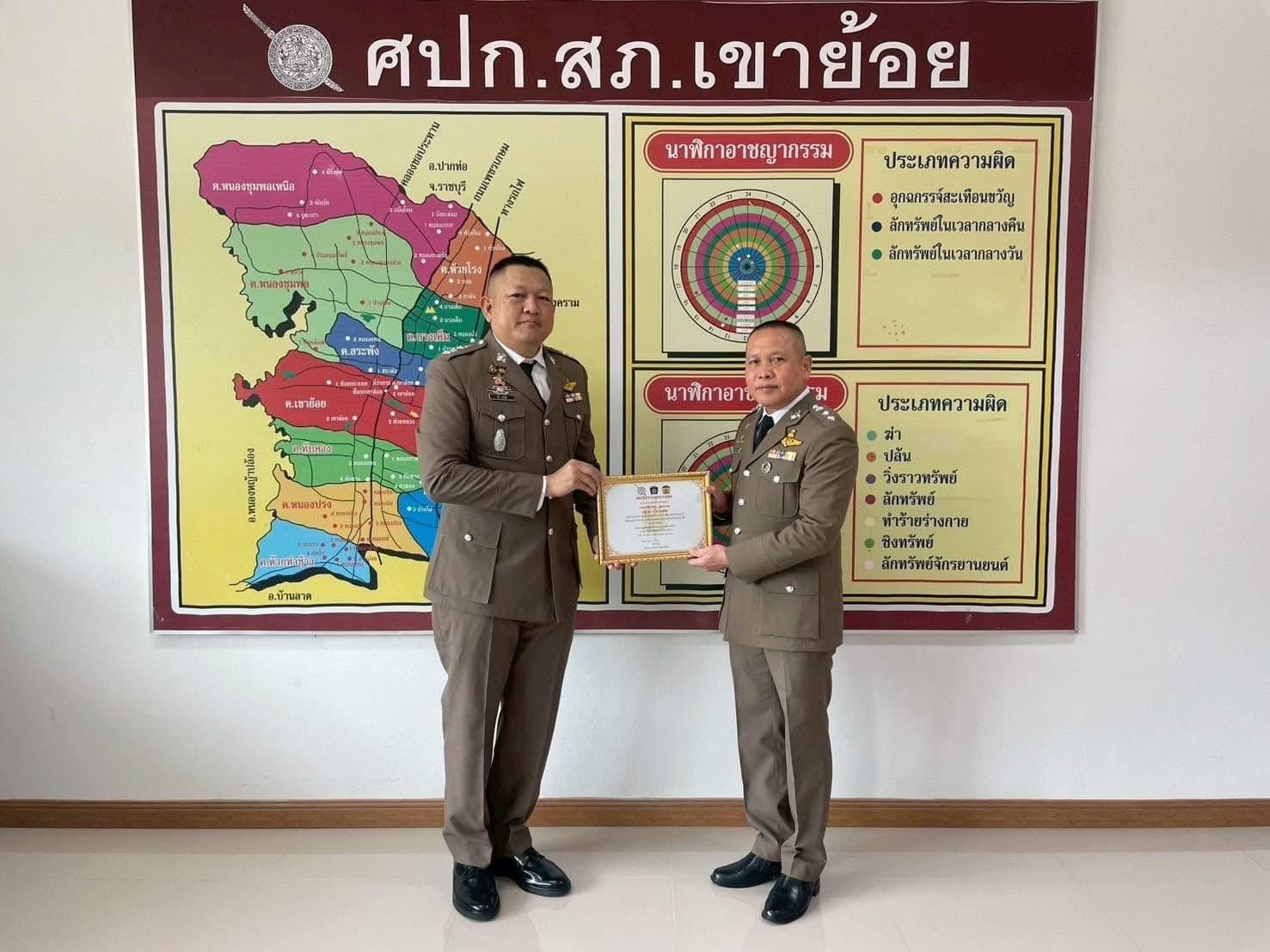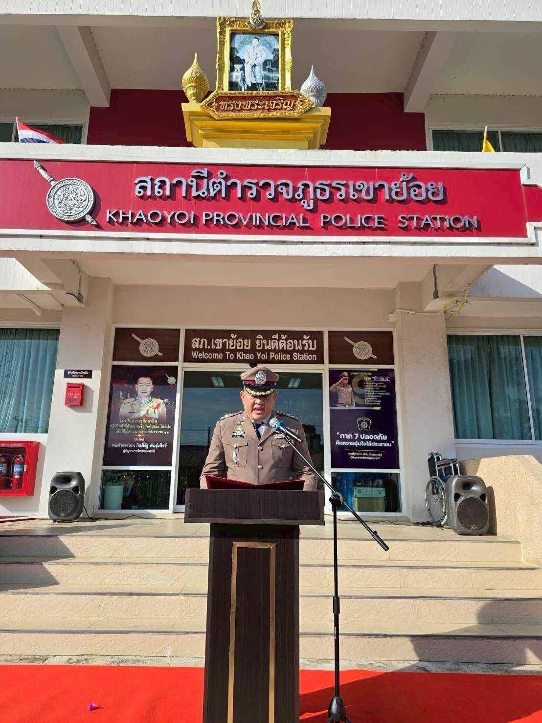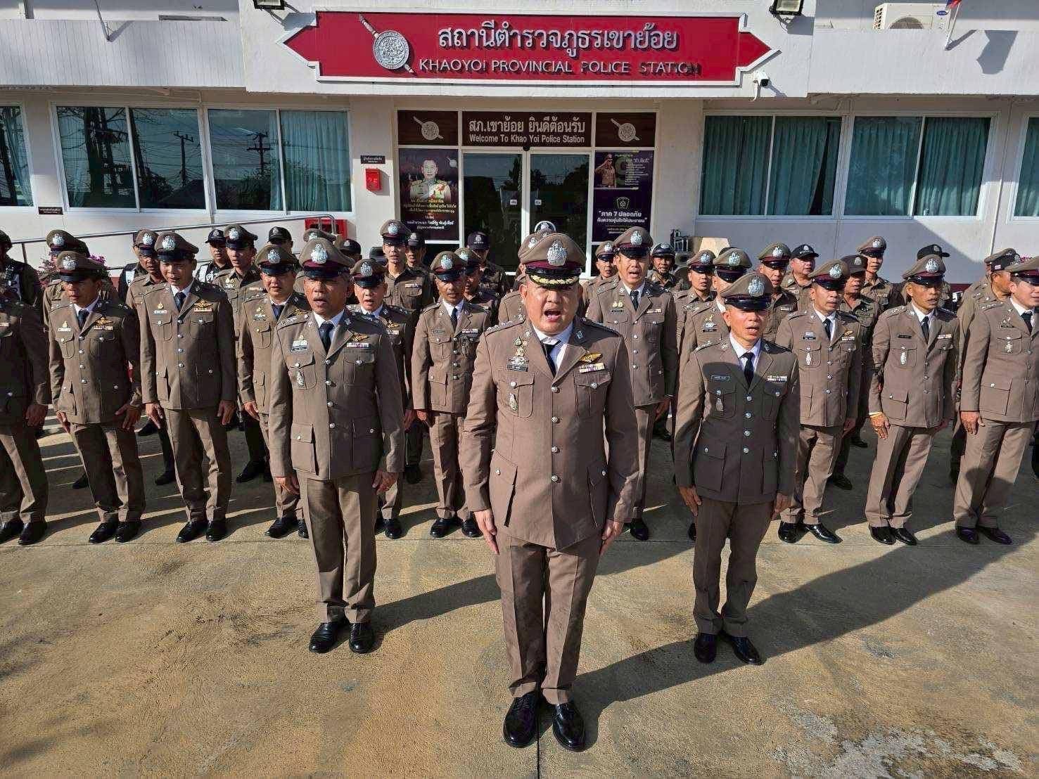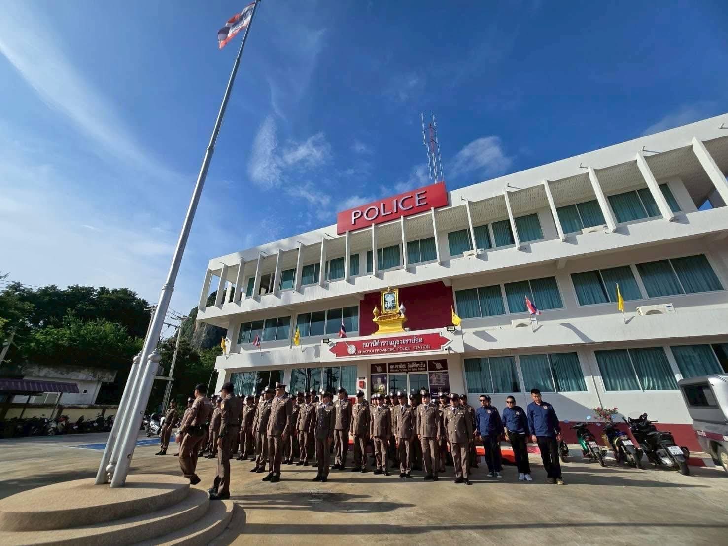 และ เคารพธงชาติ กล่าวคำปฏิญาณเป็นข้าราชการตำรวจที่ดีและพลังของแผ่นดิน , อุดมคติตำรวจ และ พิธีอ่านสาร ผบ.ตร. และมอบรางวัลให้ผู้ที่ปฏิบัติหน้าที่ด้วยความเข้มแข็งเนื่องใน “วันตำรวจ” ประจำปี 2568 ณ ที่ทำการ สภ.เขาย้อย