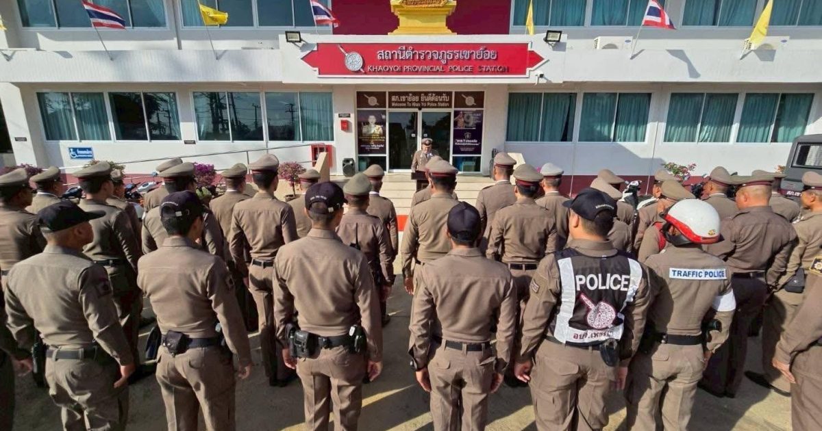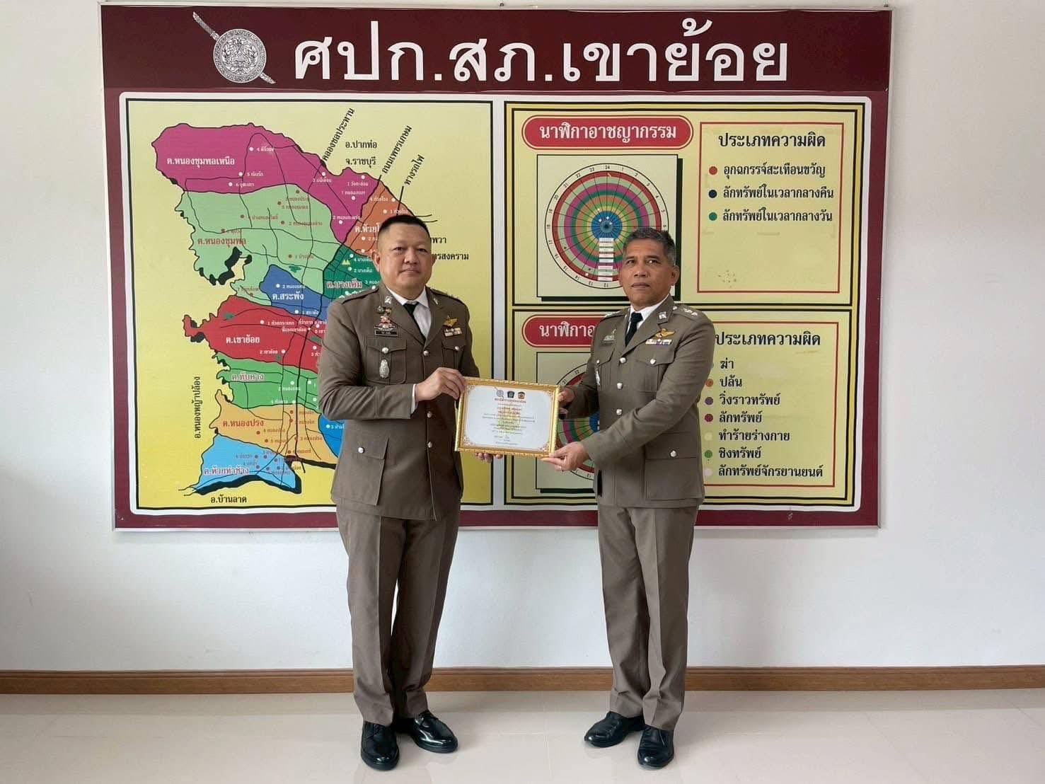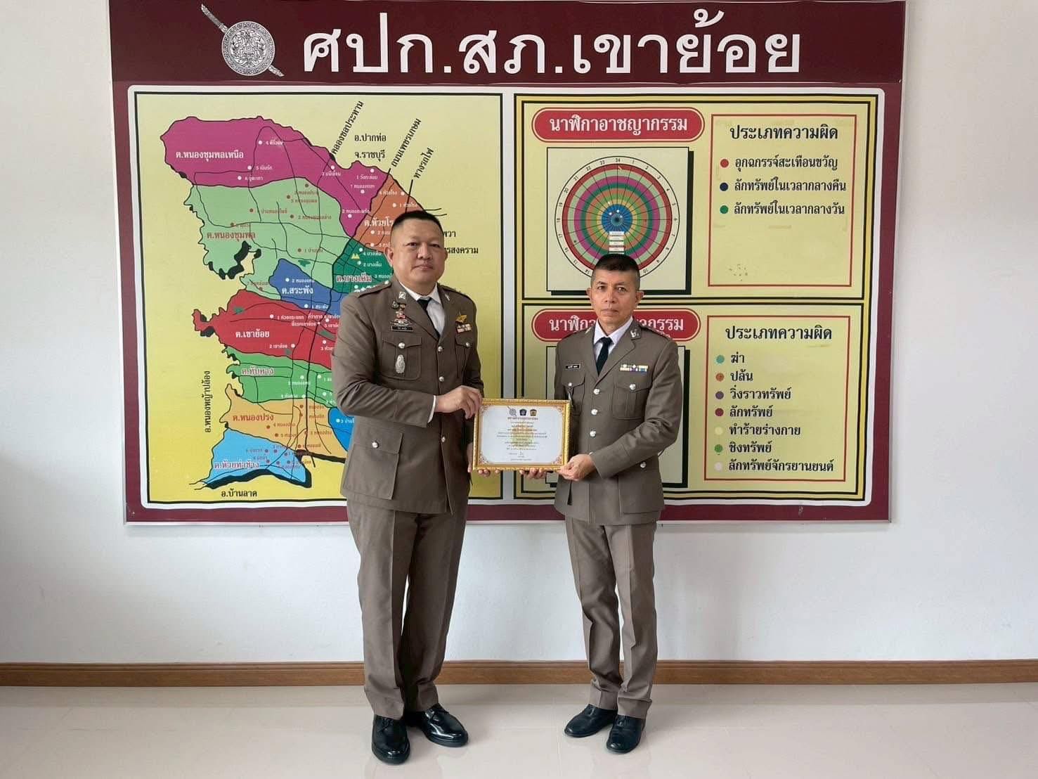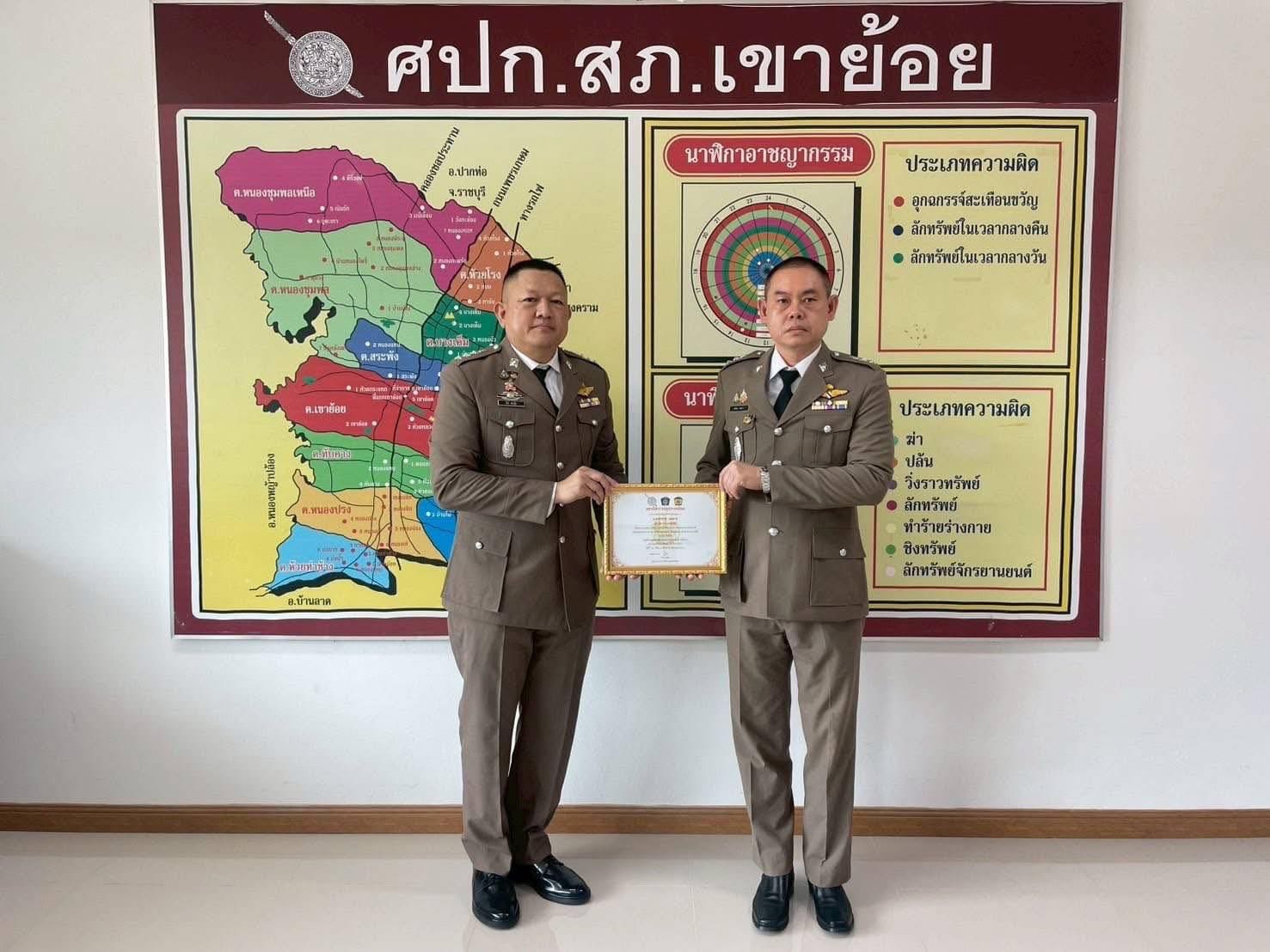 และ เคารพธงชาติ กล่าวคำปฏิญาณเป็นข้าราชการตำรวจที่ดีและพลังของแผ่นดิน , อุดมคติตำรวจ และ พิธีอ่านสาร ผบ.ตร. และมอบรางวัลให้ผู้ที่ปฏิบัติหน้าที่ด้วยความเข้มแข็งเนื่องใน “วันตำรวจ” ประจำปี 2568 ณ ที่ทำการ สภ.เขาย้อย