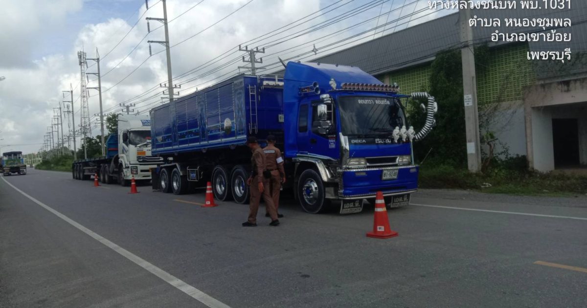 จราจร สภ.เขาย้อย กวดขันวินัยจราจรเส้นหนองชุมพล-พุม่วง เพี่อป้องกันเรถบรรทุกทำหินตกหล่น บังคับใช้กฎหมายตามนโยบายการใช้รถใช้ถนน