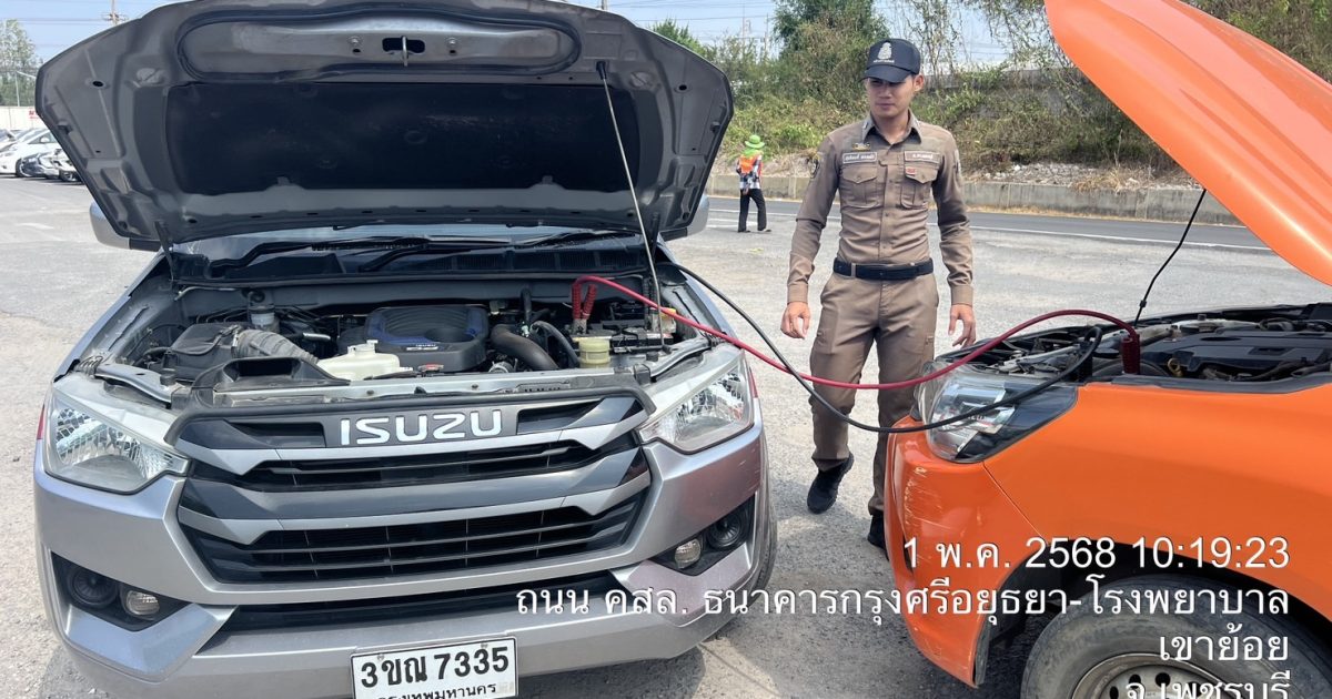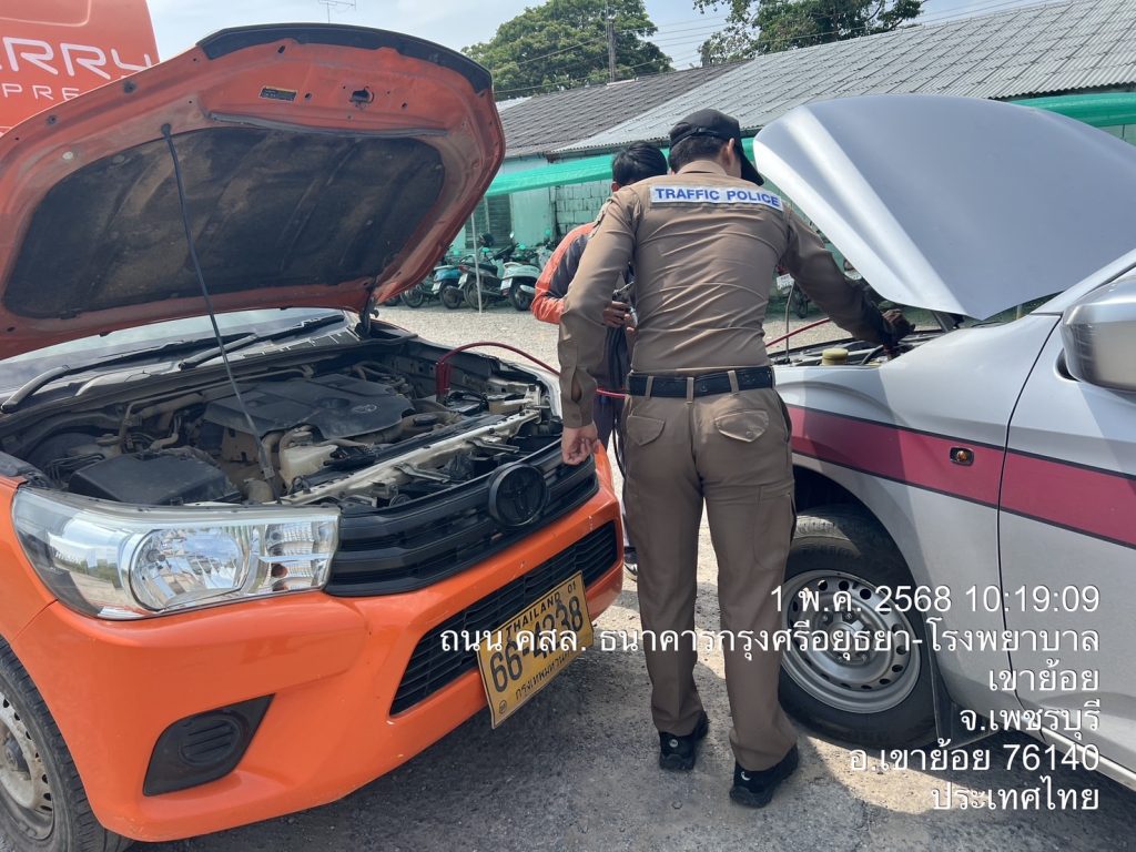 จราจร สภ.เขาย้อย ให้การช่วยเหลือ กรณีรถยนต์แบตเตอรี่เสื่อม