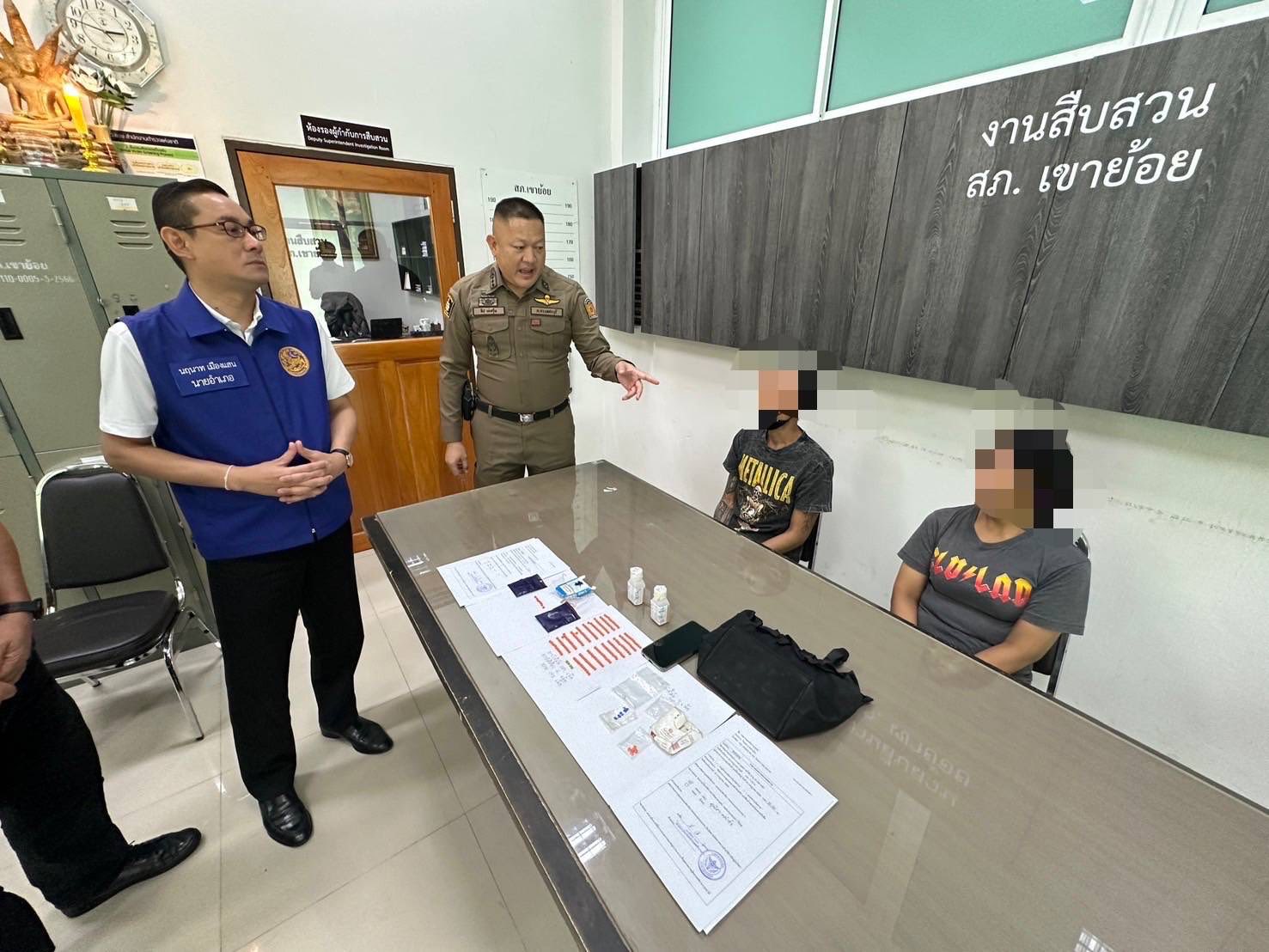 โดยทางเจ้าหน้าที่ตำรวจ สภ.เขาย้อยได้รับแจ้งจากสายลับของฝ่ายปกครอง อ.เขาย้อย ว่าผู้ต้องหาทั้งสองคนซึ่งเป็นสามีภรรยากันและเป็นลูกจ้างร้านปะยางในปั๊มน้ำมัน ถ.เพชรเกษมขาล่องใต้ แอบลักลอบจำหน่ายยาบ้าให้กับลูกค้ารถสิบล้อที่มาปะยางและคนในพื้นที่จึงได้เข้าทำการตรวจค้นและจับกุมดังนี้