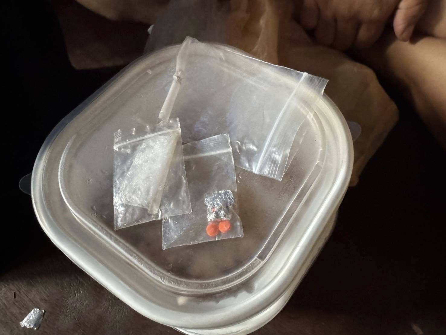 1. ยาเสพติดให้โทษประเภท 1 (ยาบ้า) ลักษณะเม็ดกลมแบนสีส้ม บรรจุอยู่ในถุงพลาสติกใสชนิดผนึกได้ จำนวน 5 เม็ด และ ยาไอซ์ บรรจุอยู่ในถุงพลาสติกใสชนิดผนึกได้ น้ำหนักชั่งไม่รวมถุง 0.02 กรัม
