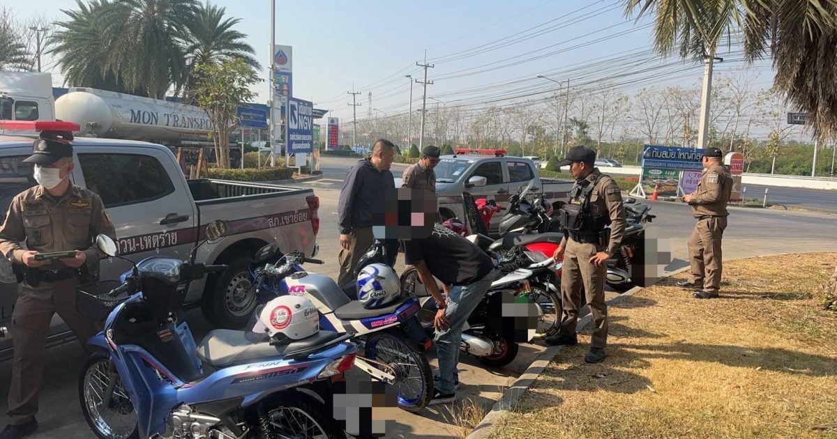 ตรวจสอบวัยรุ่นจับกุมขับขี่รถจักรยานยนต์ ตามมาตรการป้องกันปราบปรามการแข่งรถในทางสาธารณะ