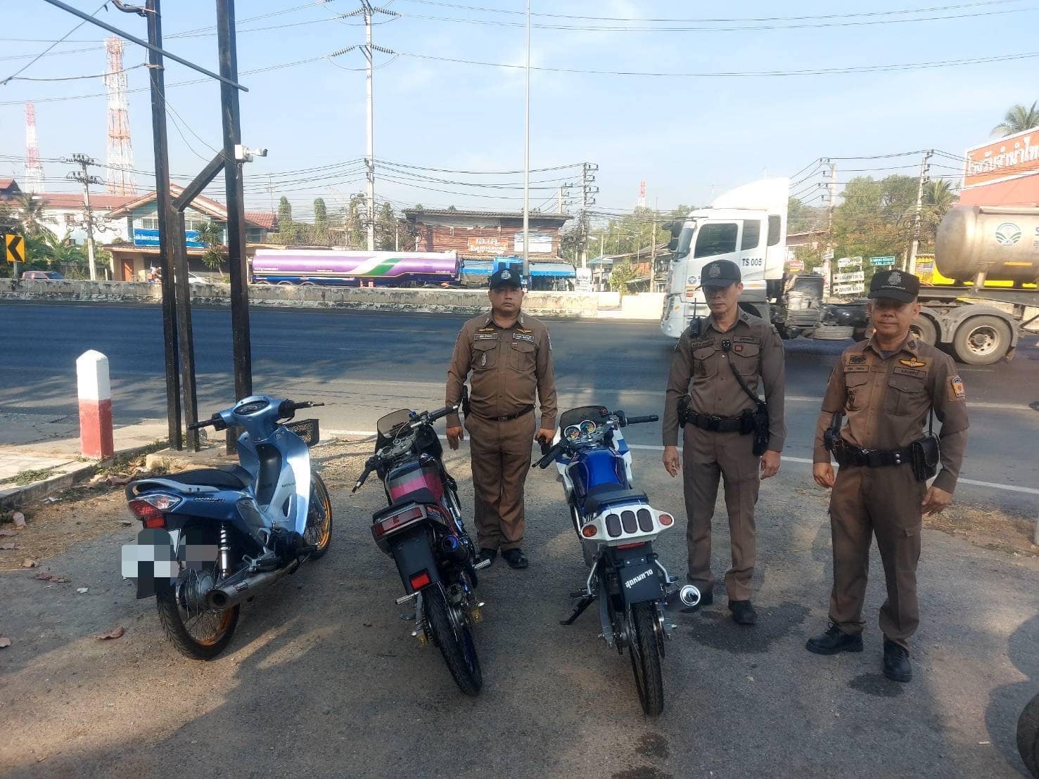ตรวจสอบวัยรุ่นจับกุมขับขี่รถจักรยานยนต์ ตามมาตรการป้องกันปราบปรามการแข่งรถในทางสาธารณะ