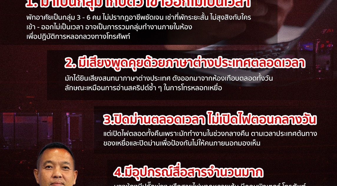 สำนักงานตำรวจแห่งชาติตีแผ่ 4 พฤติกรรมแก๊งคอลเซ็นเตอร์ที่แอบตั้งฐานปฏิบัติการ หากพบขอให้รีบแจ้ง