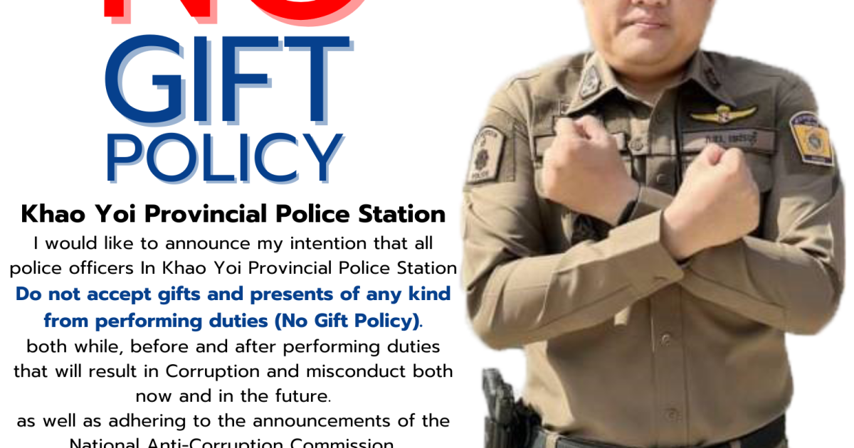 ประกาศเจตนารมณ์ที่จะไม่รับของขวัญ หรือของกำนัลทุกชนิดจากการปฏิบัติหน้าที่ (No Gift Policy)