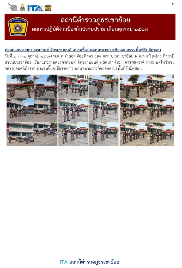 ปล่อยแถวสายตรวจรถยนต์ จักรยานยนต์ อบรมชี้แจงมอบหมายภารกิจออกตรวจพื้นที่รับผิดชอบ