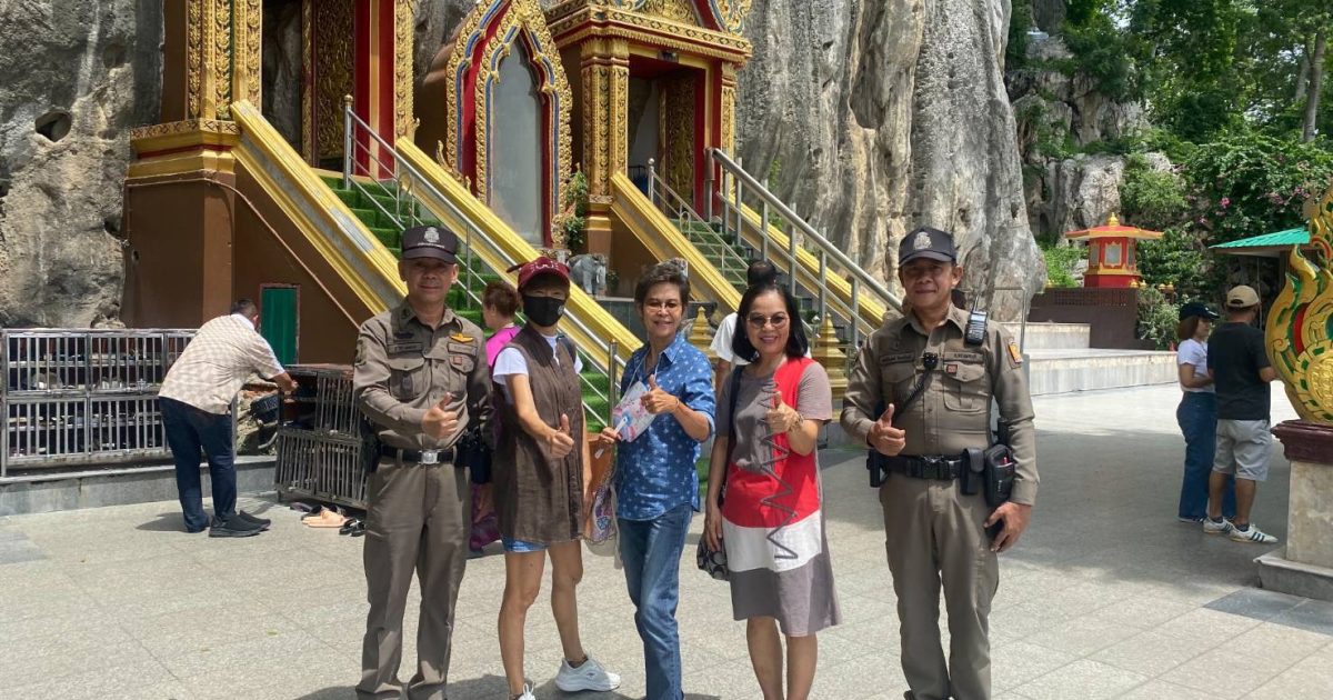 ป้องกันเหตุ รักษาความเรียบร้อย พร้อมทั้งบริการและแนะนำสถานที่ท่องเที่ยว บริเวณหน้าถ้ำเขาย้อย