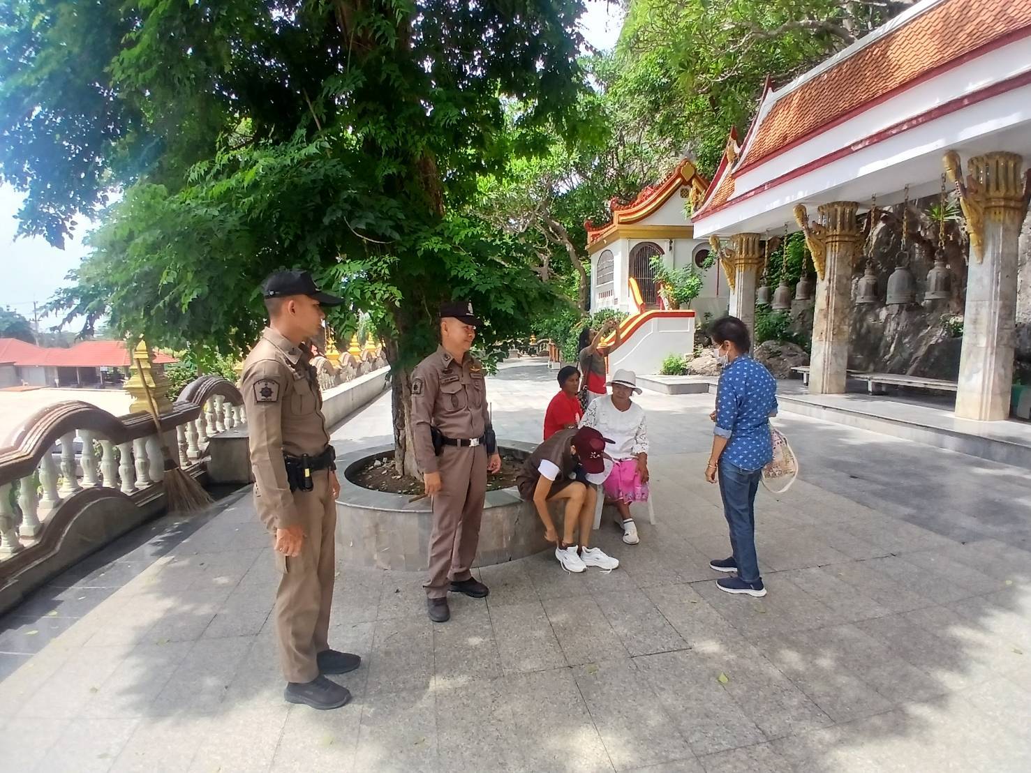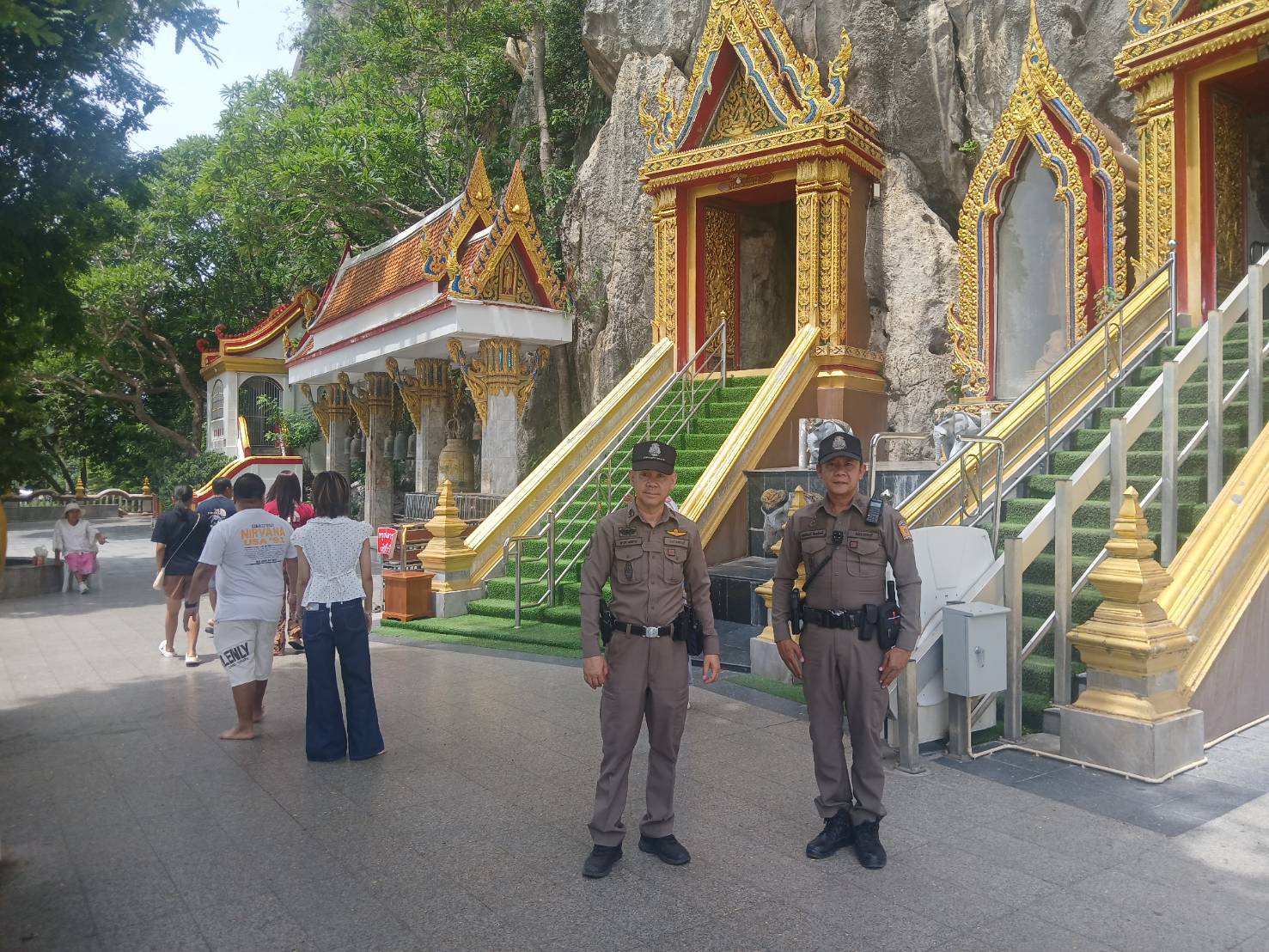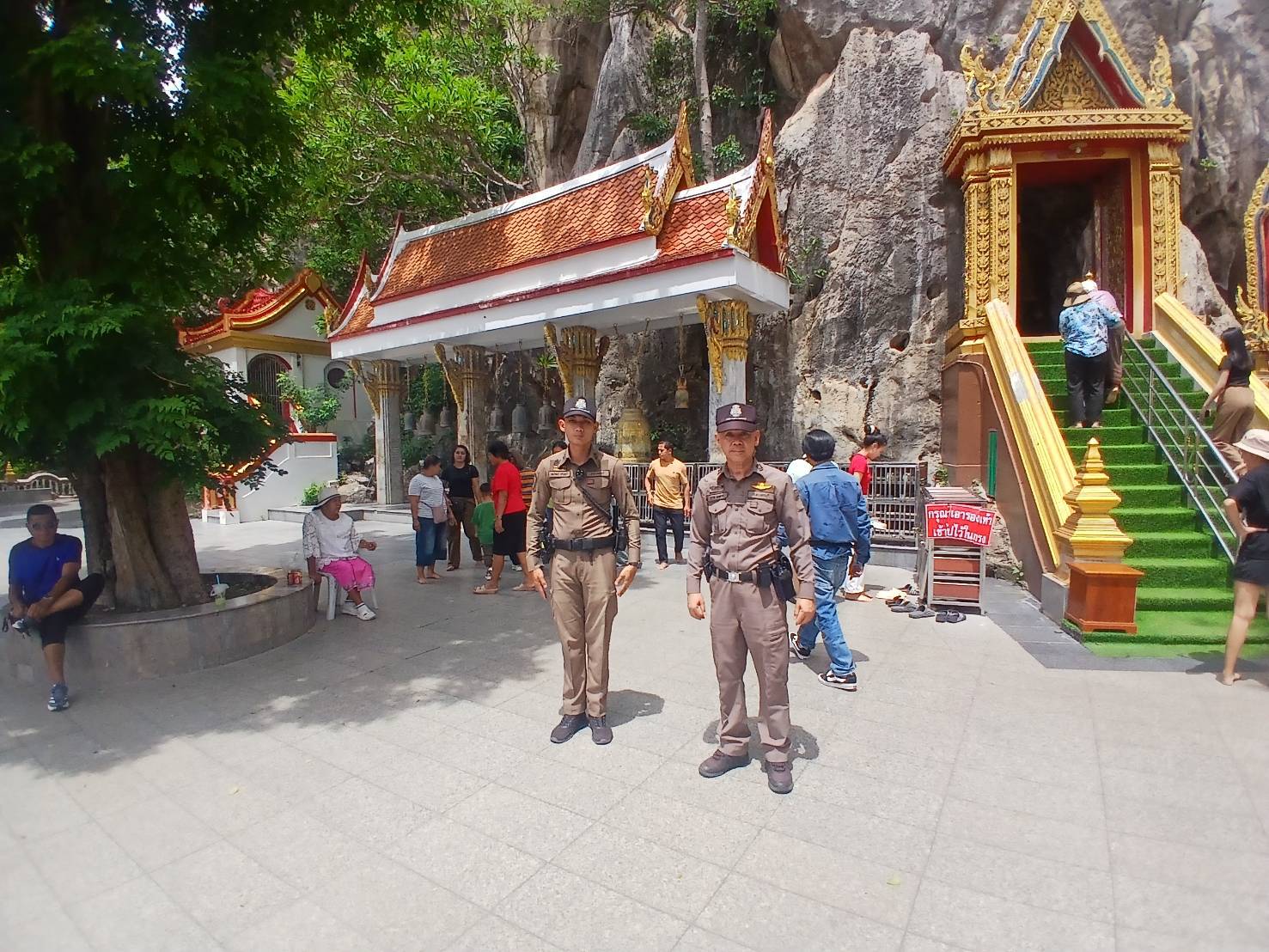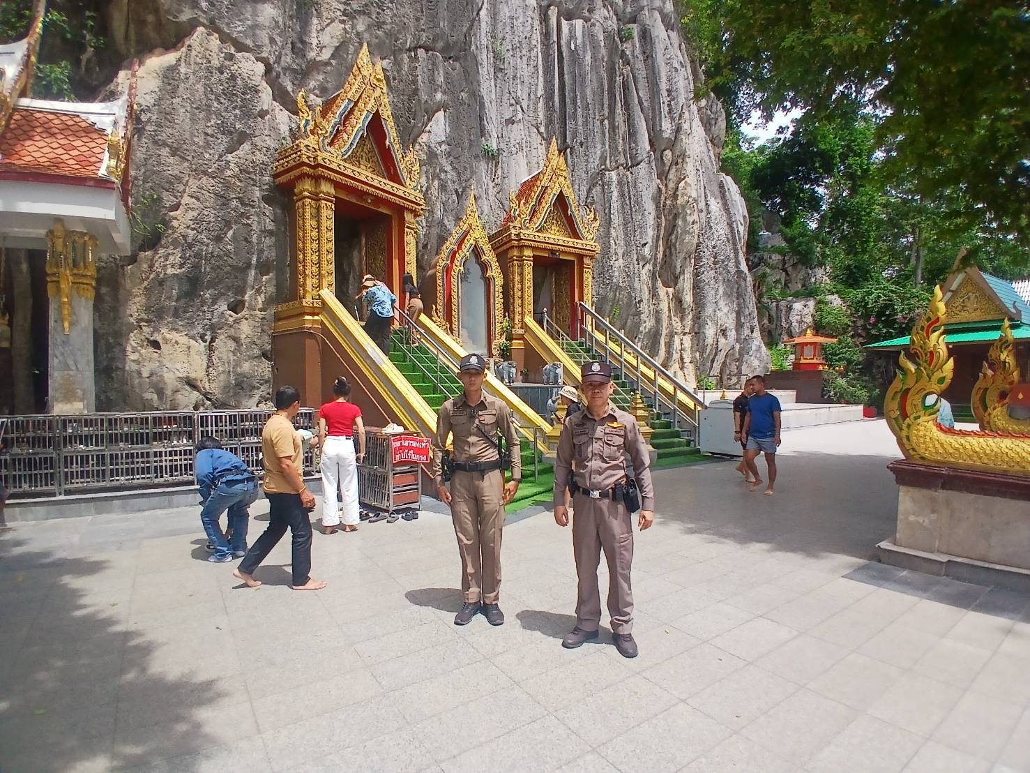 ป้องกันเหตุ รักษาความเรียบร้อย พร้อมทั้งบริการและแนะนำสถานที่ท่องเที่ยว บริเวณหน้าถ้ำเขาย้อย