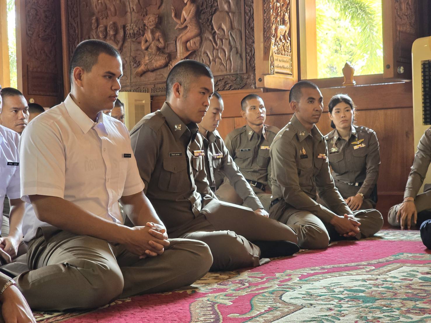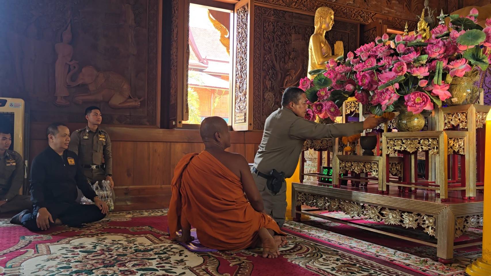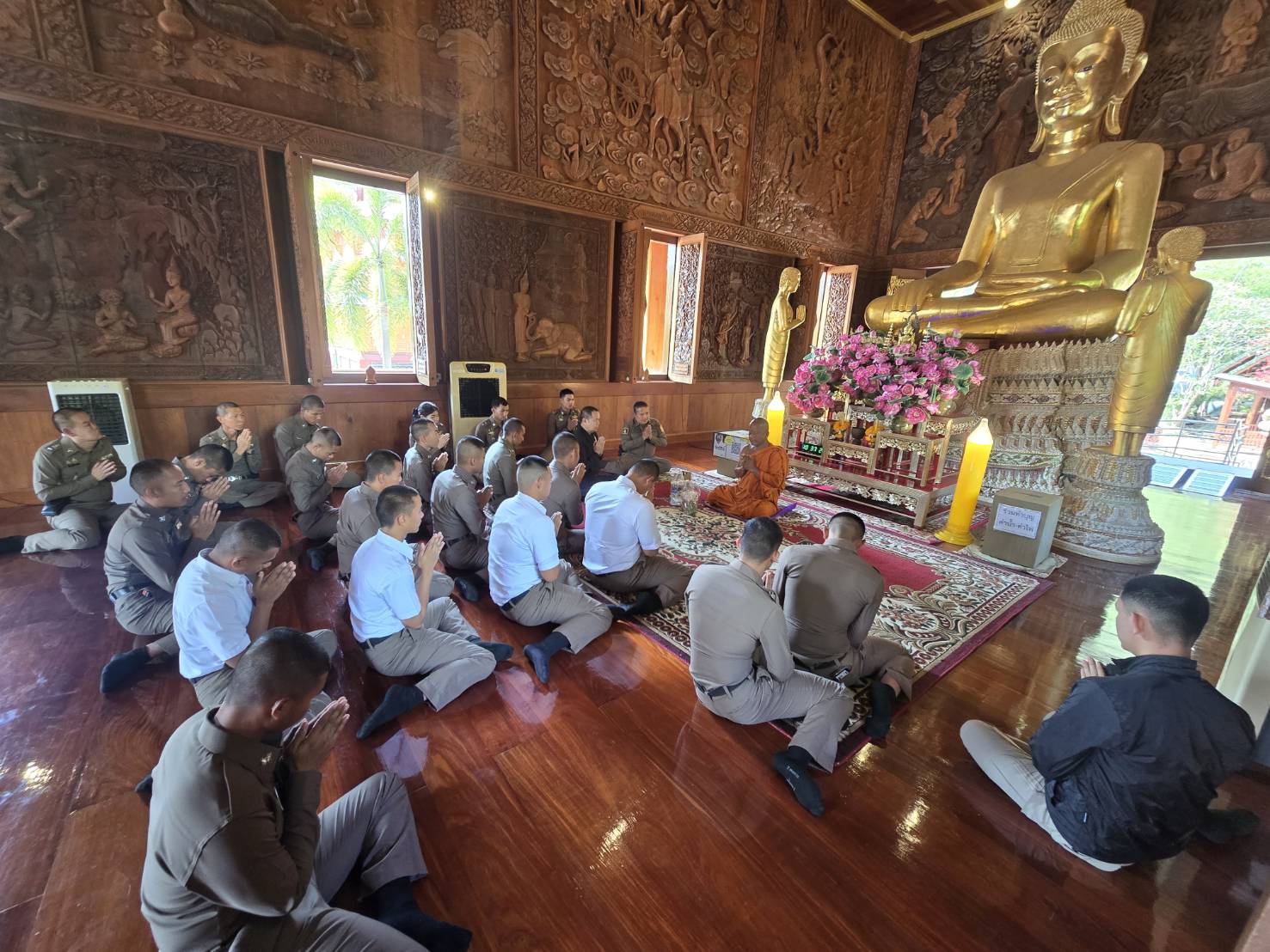 ร่วมกราบนมัสการและถวายภัตตาหารเพลแด่ พระมหานิธิกาญจน์ นิธิวํโส เจ้าอาวาสวัดเขาย้อย เนื่องในวันพระ แรม 8 ค่ำ เดือน3 พร้อมรับฟังพระธรรมเทศนา คำสอนธรรมะ ซึ่งสามารถนำไปใช้ในการปฏิบัติหน้าที่ และเพื่อเป็นสิริมงคลในการมาปฏิบัติงานที่ สภ.เขาย้อย ในครั้งนี้ ณ อุโบสถวัดเขาย้อย