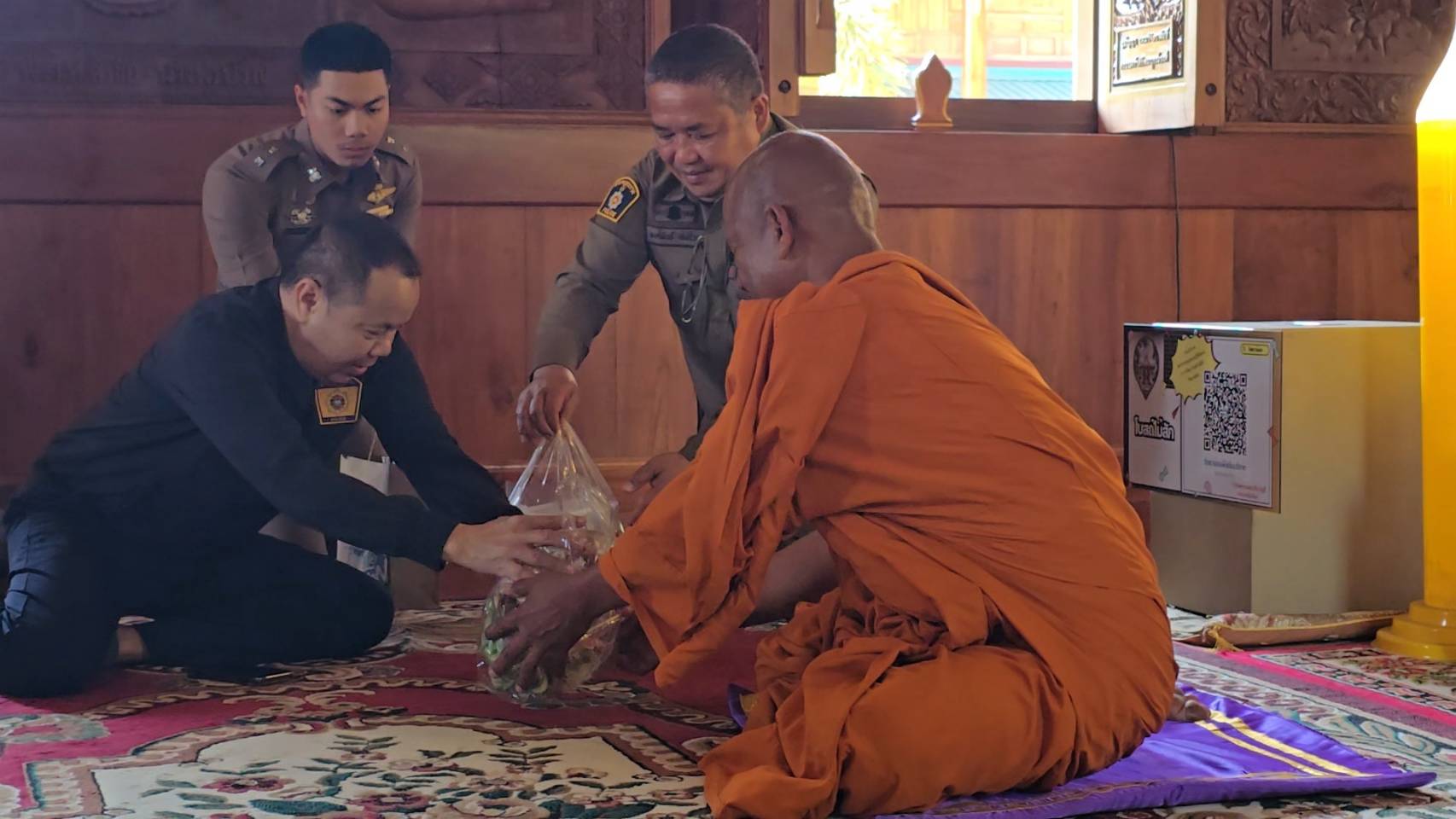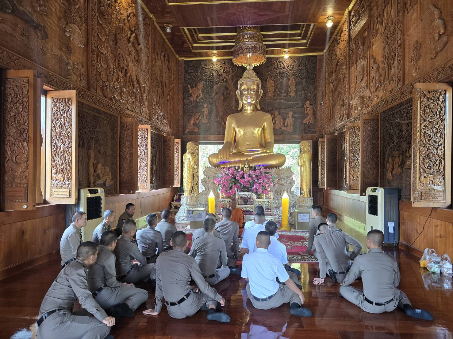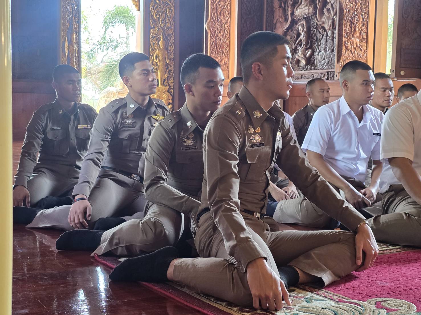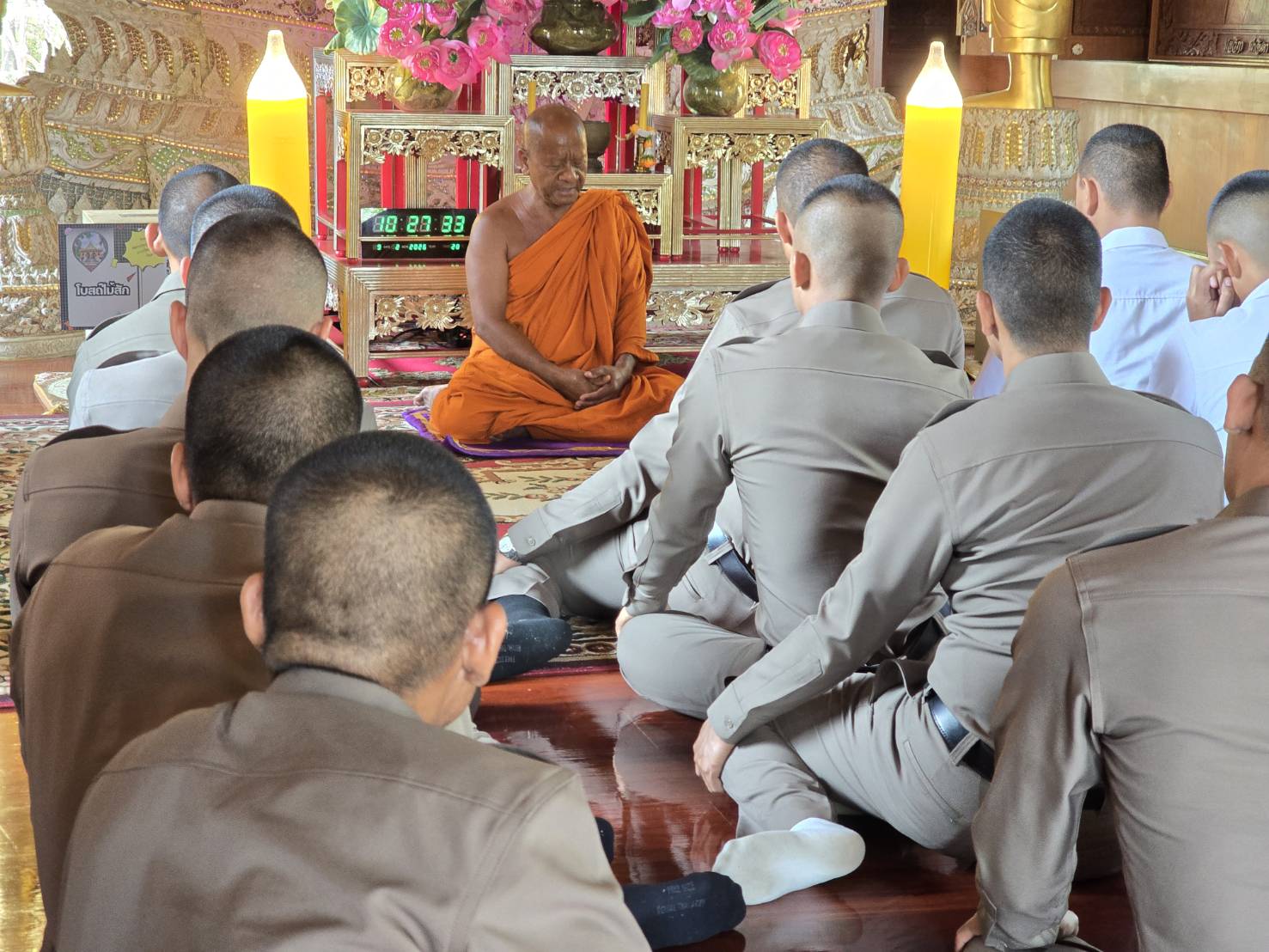 ร่วมกราบนมัสการและถวายภัตตาหารเพลแด่ พระมหานิธิกาญจน์ นิธิวํโส เจ้าอาวาสวัดเขาย้อย เนื่องในวันพระ แรม 8 ค่ำ เดือน3 พร้อมรับฟังพระธรรมเทศนา คำสอนธรรมะ ซึ่งสามารถนำไปใช้ในการปฏิบัติหน้าที่ และเพื่อเป็นสิริมงคลในการมาปฏิบัติงานที่ สภ.เขาย้อย ในครั้งนี้ ณ อุโบสถวัดเขาย้อย