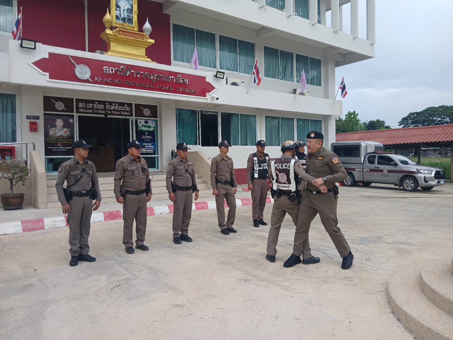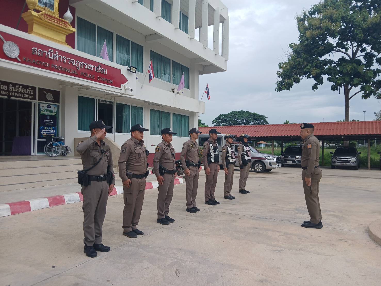 ผกก.สภ.เขาย้อย ปล่อยแถวสายตรวจ รถยนต์ จักรยานยนต์ ฝึกยุทธวิธี กำชับข้อสั่งการของผู้บังคับบัญชา