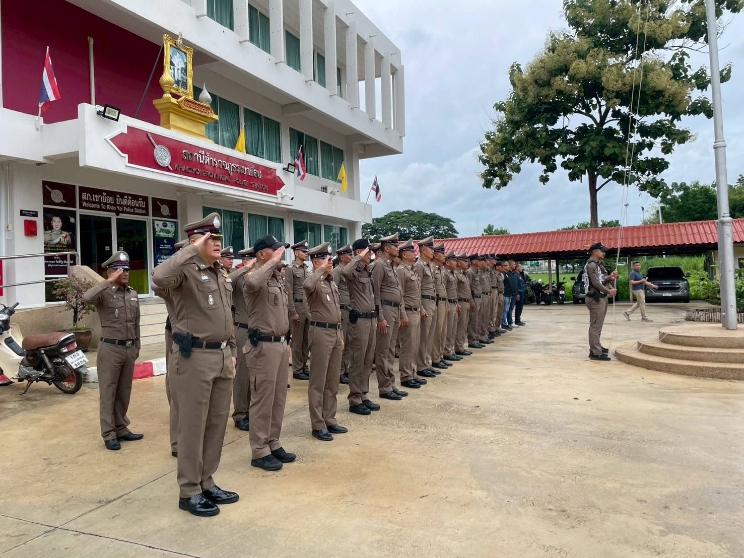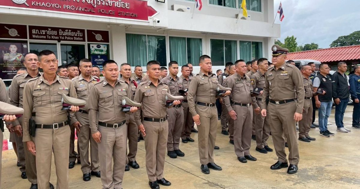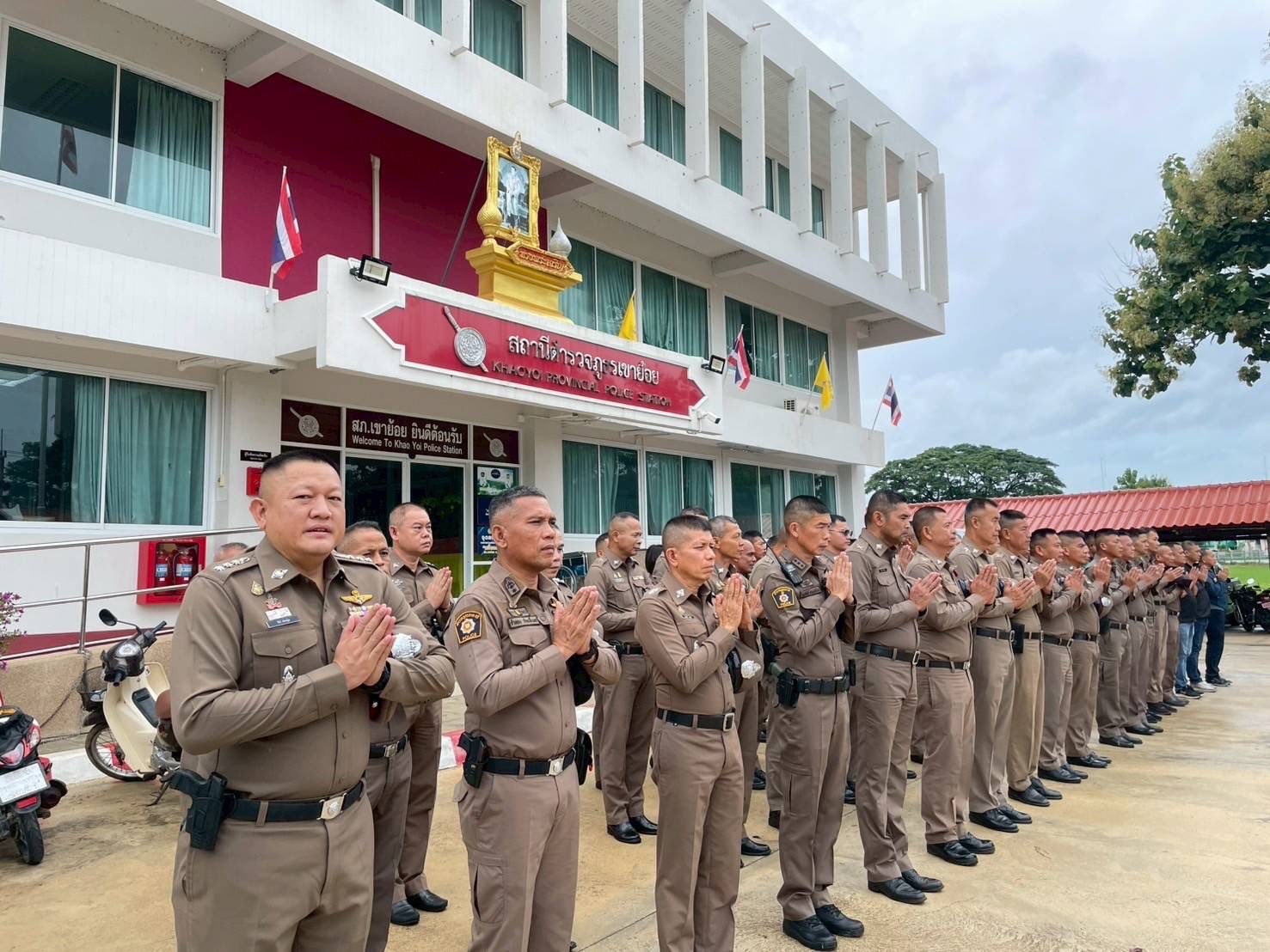 ผกก.สภ.เขาย้อย เรียกแถวกำลังข้าราชการตำรวจฯ อบรมปล่อยแถว กำชับข้อสั่งการของผู้บังคับบัญชา และตรวจทรงผม เครื่องแต่งกาย
