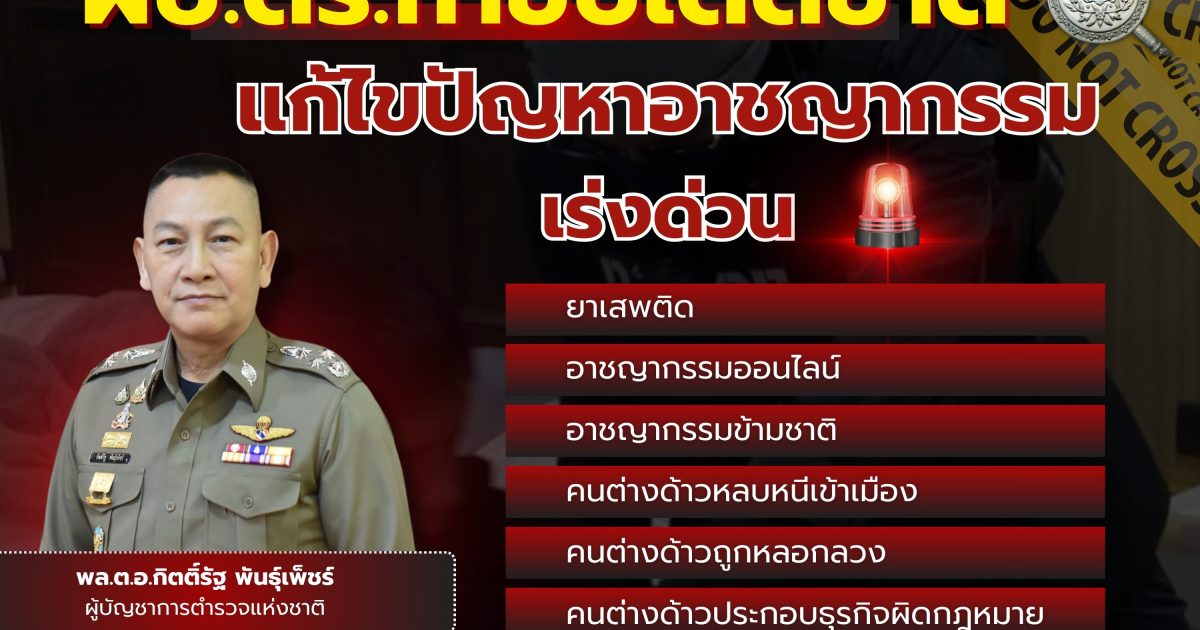 ผบ.ตร. กำชับ ตามที่ รัฐบาล และ ตร. มีนโยบายเร่งด่วนในการแก้ไขปัญหายาเสพติด ปัญหาอาชญากรรมออนไลน์ อาชญากรรมข้ามชาติ คนต่างด้าวหลบหนีเข้าเมืองโดยผิดกฎหมาย และคนต่างด้าวถูกหลอกลวงหรือประกอบธุรกิจผิดกฎหมายซึ่ง ตร. ได้มีมาตรการให้หน่วยปฏิบัติตามนัยหนังสือ ตร. ด่วนที่สุด ที่ ๐๐๐๗.๓๓/๓๑๖ ลง ๒๓ ม.ค.๖๘ ตลอดจนการป้องกันปราบปรามคนต่างด้าวที่เข้ามาในลักษณะ ที่แอบแฝงหรือกระทำความผิดในลักษณะที่เป็นภัยต่อสังคม หรือจะก่อเหตุร้ายให้เกิดอันตรายต่อความสงบสุขหรือความปลอดภัยของประชาชน หรือความมั่นคงแห่งราชอาณาจักร อันส่งผลต่อภาพลักษณ์หรือประสิทธิภาพในการบังคับใช้กฎหมายของสังคมโดยรวม จึงกำชับให้ทุกหน่วยดำเนินการ ดังนี้