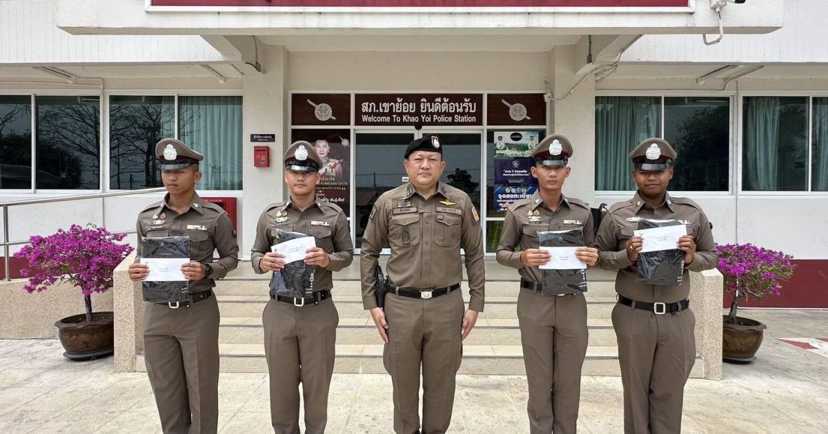 พ.ต.อ.ธิป เข่งคุ้ม ผกก.ฯ ให้การต้อนรับ ข้าราชการตำรวจจบใหม่ จำนวน 4 นาย ที่มาบรรจุที่ สภ.เขาย้อย