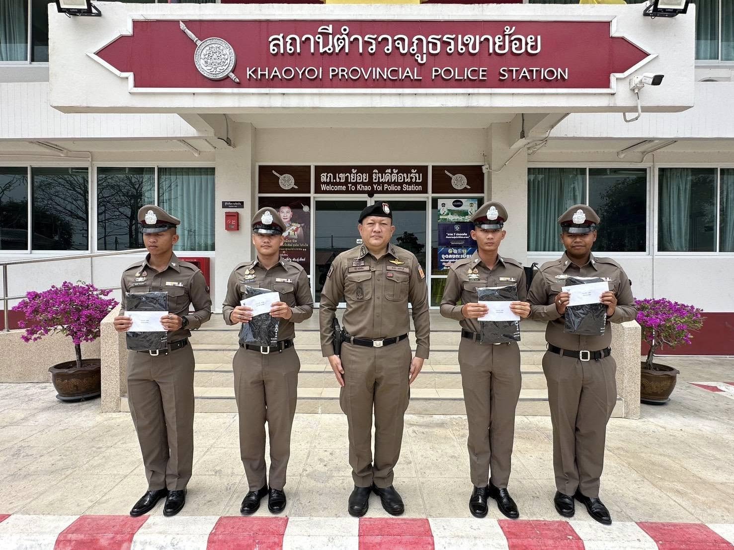 พ.ต.อ.ธิป เข่งคุ้ม ผกก.ฯ ให้การต้อนรับ ข้าราชการตำรวจจบใหม่ จำนวน 4 นาย ที่มาบรรจุที่ สภ.เขาย้อย
