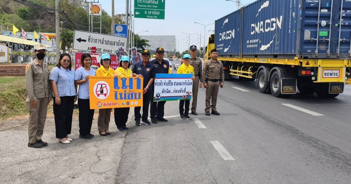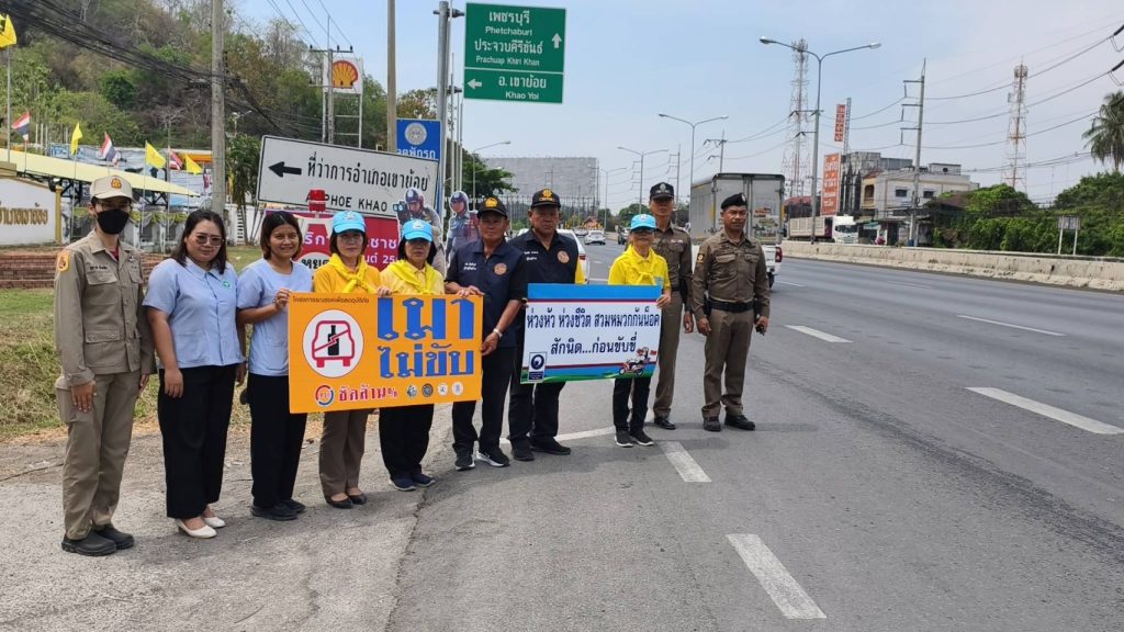 รณรงค์ ประชาสัมพันธ์ แจ้งเตือน เมาไม่ขับ 11 เมษายน 2568 โดย adm_khaoyoi adm_khaoyoi / งานจราจร วันที่ 11 เม.ย.68 เวลา 10.00 น.ภายใต้การอำนวยการของ พ.ต.อ.ธิป เข่งคุ้ม ผกก.สภ.เขาย้อย สั่งการให้ พ.ต.ท.เกรียงไกร กิ่งสามี สวป.สภ.เขาย้อย พร้อม ร.ต.อ.หญิง จรรยา ศรีวงษ์ ,ร.ต.ท.ชวลิต ธีรศาสต์ ,ร.ต.ต.ประยุทธ เอี่ยมองอาจ ,ด.ต.หญิง วันทนา แอวงษ์ ร่วมกับเจ้าหน้าที่สาธารณสุข,ฝ่ายปกครองและประชาชนจิตอาสา กิจกรรมรณรงค์ ประชาสัมพันธ์ แจ้งเตือน เมาไม่ขับ ,กลับถึงบ้านอย่างปลอดภัยสวมหมวกนิรภัย,ลดเร็ว ลดเสี่ยง จิตอาสาเฉพาะกิจ ภายใต้แนวคิด “ชีวิตวิถีใหม่ ขับขี่่ปลอดภัย ไร้อุบัติเหตุ”บริเวณจุดบริการประชาชนหน้าที่ว่าการอำเภอเขาย้อย ม.5 ต.เขาย้อย อ.เขาย้อย จ.เพชรบุรี