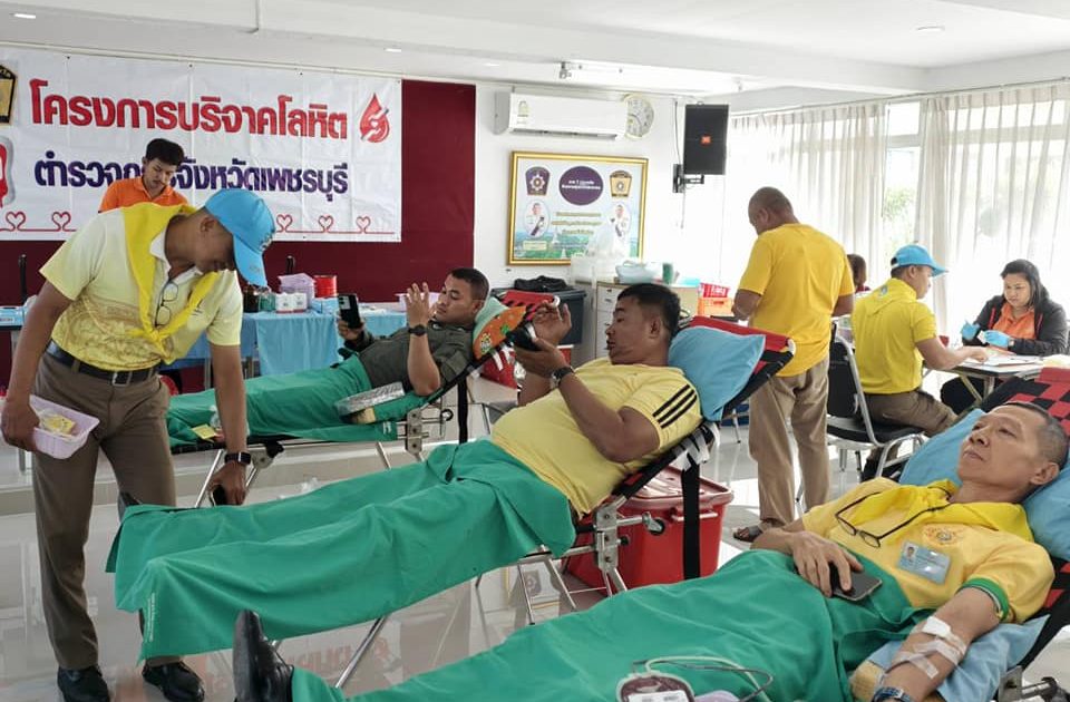 ภายใต้การอำนวยการของ พ.ต.อ.ธิป เข่งคุ้ม ผกก.สภ.เขาย้อย มอบหมายให้ ร.ต.ท.ชวลิต ธีระศานต์ รอง สว.(ป.)สภ.เขาย้อย พร้อมข้าราชการตำรวจจิตอาสา สภ.เขาย้อย จำนวน 10 นาย จิตอาสา “เราทำความ ดี ด้วยหัวใจ” ร่วมบริจาคโลหิตให้โทษกาชาด เนื่องในโอกาสวันเฉลิมพระชนมพรรษา สมเด็จพระเจ้าอยู่หัว 28 กรกฎาคม 2568 ณ ตำรวจภูธรจังหวัดเพชรบุรี