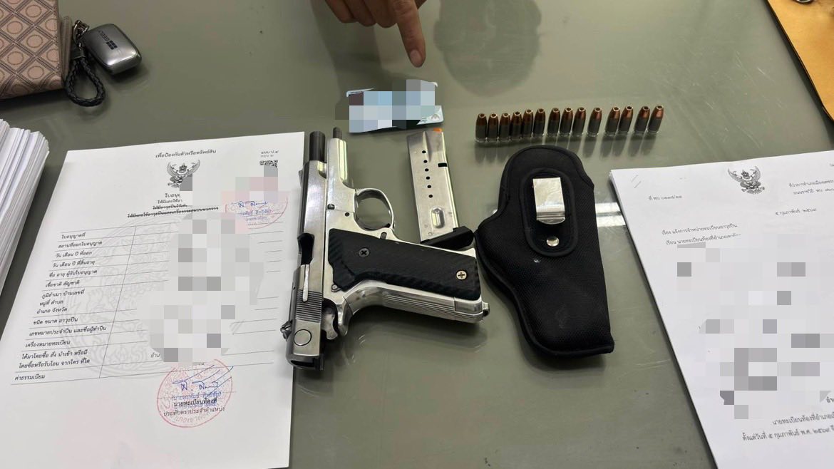 – อาวุธปืนพกสั้นชนิดกึ่งอัตโนมัติขนาด 9 มม. จํานวน 1 กระบอก