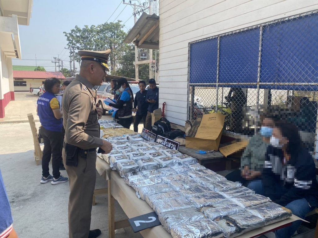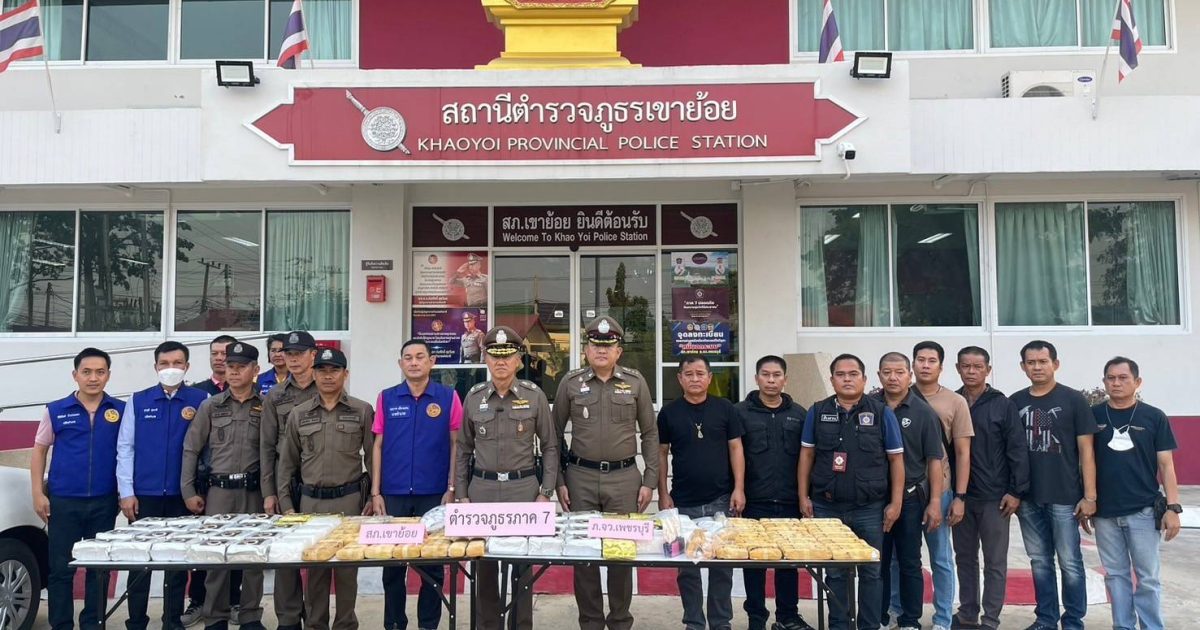 พล.ต.ต.กิตติ สุขสมภักด์ ผบก.ภ.จว.เพชรบุรี , พ.ต.อ.กานต์ ธรรมเกษม รอง ผบก.ภ.จว.เพชรบุรี ,พ.ต.อ.ธิป เข่งคุ้ม ผกก.สภ.เขาย้อย พร้อมสายตรวจงานป้องกันปราบปราม , ชุดสืบสวน ได้รับการประสานให้ตรวจสอบรถต้องสงสัย ตรวจสอบ GPS ได้ออกนอกเส้นทางมาแวะจอดในพื้นที่ อ.เขาย้อย จึงไปตรวจสอบที่รีสอร์ทแห่งหนึ่งที่สัญญาณ GPS จับได้ พบรถกระบะ โตโยต้า สีขาว หมายเลขทะเบียน ผจ 1829 อุดรธานี มีถังปั๊มลมขนาดใหญ่อยู่ท้ายกระบะ มีลักษณะใหม่แต่มีรอยการเชื่อมและพ่นสีใหม่ และน้ำหนักมากผิดปกติ จอดอยู่หน้าห้อง ที่ ลานนา รีสอร์ท ต.เขาย้อย อ.เขาย้อย จ.เพชรบุรี จึงเรียกผู้ที่เข้าพักออกมาตรวจสอบ พบเป็นหญิง 2 ราย ตรวจสอบเอกสารเป็นชาว จ.นราธิวาส จึงควบคุมตัวมาทำการตรวจสอบ ที่ สภ.เขาย้อย พบยาเสพติดยังไม่ทราบชนิด บรรจุอยู่ในถังปั๊มลม ทั้ง 2 ถัง จึงประสานเจ้าหน้าที่พิสูจน์หลักฐานและเจ้าหน้าที่ ปปส. เข้าร่วมตรวจสอบ พบของกลางเป็น ยาบ้า จำนวน 52 ห่อ รวม 258,000 เม็ด ยาไอซ์ จำนวน 50 ห่อ รวม 50 กิโลกรัม สอบถามแจ้งว่า ได้ไปรับยาจาก จ.หนองคาย โดยจะนำไปส่งต่อที่ อ.ปราณบุรี จ.ประจวบฯ และได้แวะพักที่ จ.เพชรบุรี ก่อนถูกจับกุม จึงนำตัวส่งร้อยเวร สภ.เขาย้อย และประสานส่วนที่เกี่ยวข้อง ดำเนินการขยายผลต่อไป