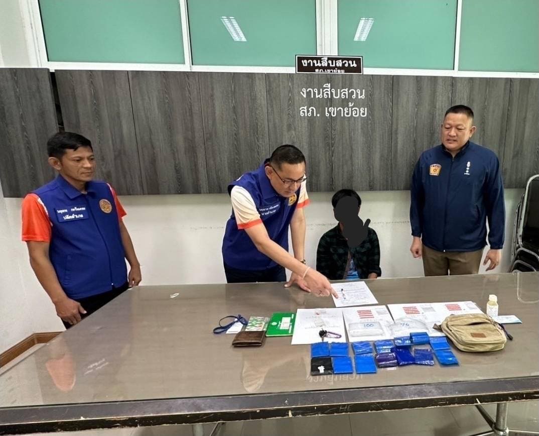 สภ.เขาย้อย ร่วมกับฝ่ายปกครอง อ.เขาย้อย จับกุมตัวผู้ต้องหาลักลอบจำหน่ายยาบ้าให้กับเพื่อนร่วมงานในโรงงาน จำนวน 1 ราย 1 คนพร้อมด้วยของกลางยาบ้า 150 เม็ด