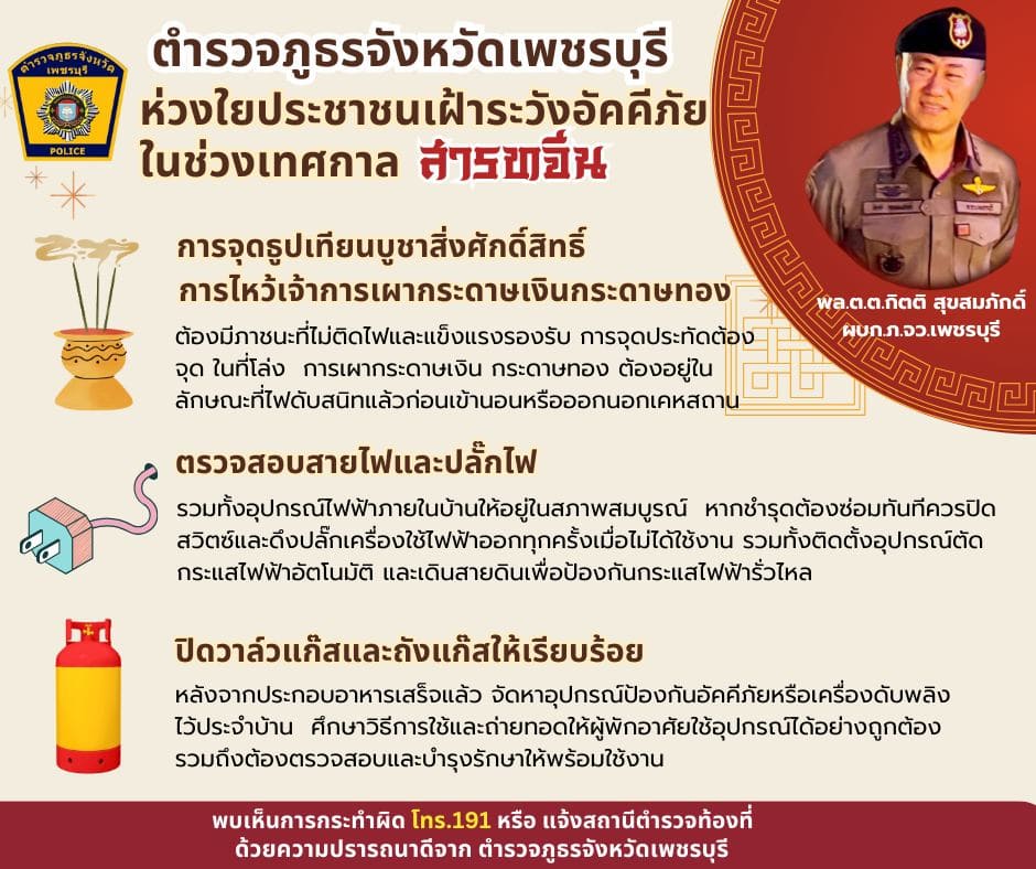 พล.ต.ต.กิตติ สุขสมภักดิ์ ผบก.ภ.จว.เพชรบุรี #ห่วงใยประชาชนเฝ้าระวังอัคคีภัยในช่วงเทศกาลสารทจีน