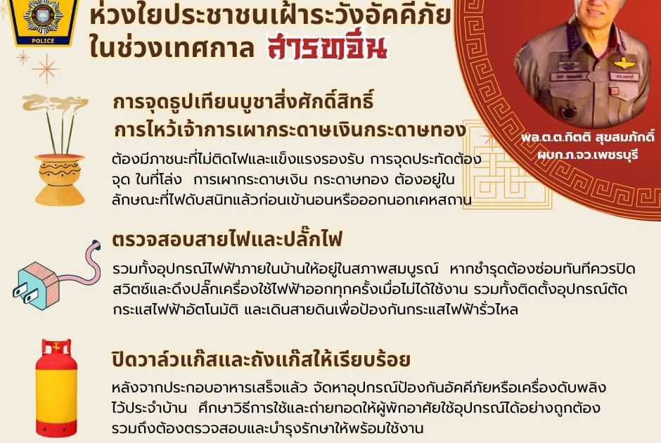 พล.ต.ต.กิตติ สุขสมภักดิ์ ผบก.ภ.จว.เพชรบุรี #ห่วงใยประชาชนเฝ้าระวังอัคคีภัยในช่วงเทศกาลสารทจีน