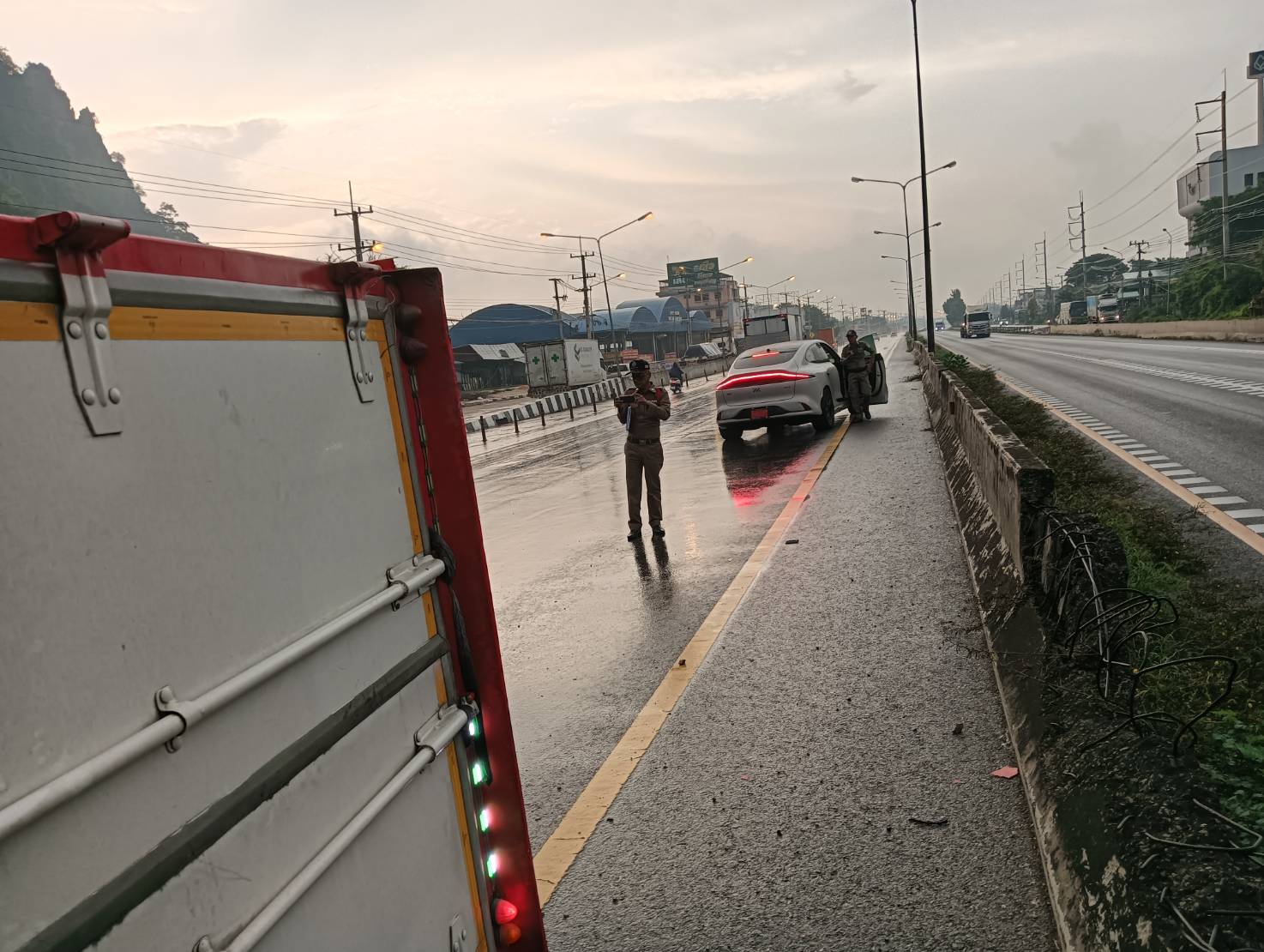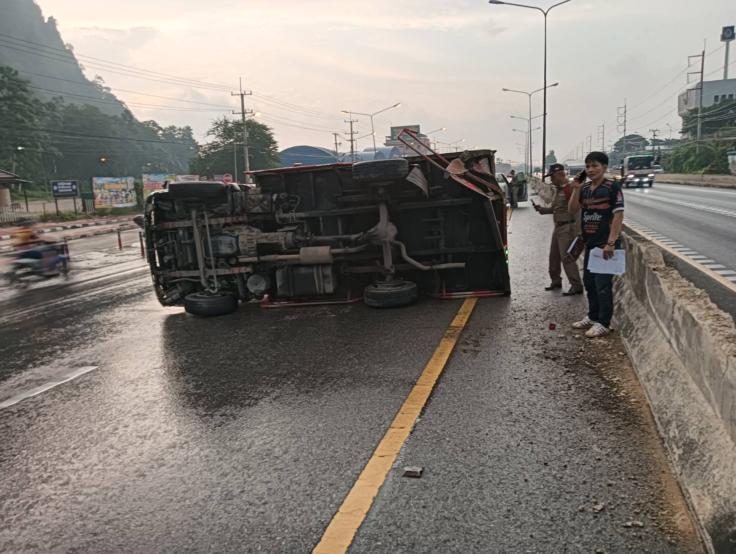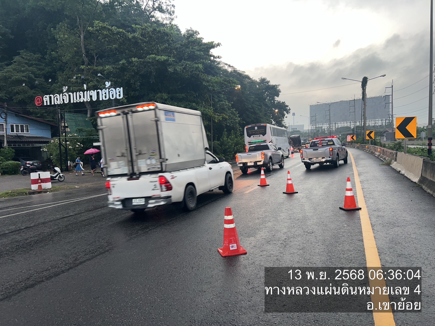 เหตุหกล้อพลิกคว่ำ ศาลเจ้าแม่เขาย้อย กีดขวางการจราจร ไม่ทราบผู้บาดเจ็บ