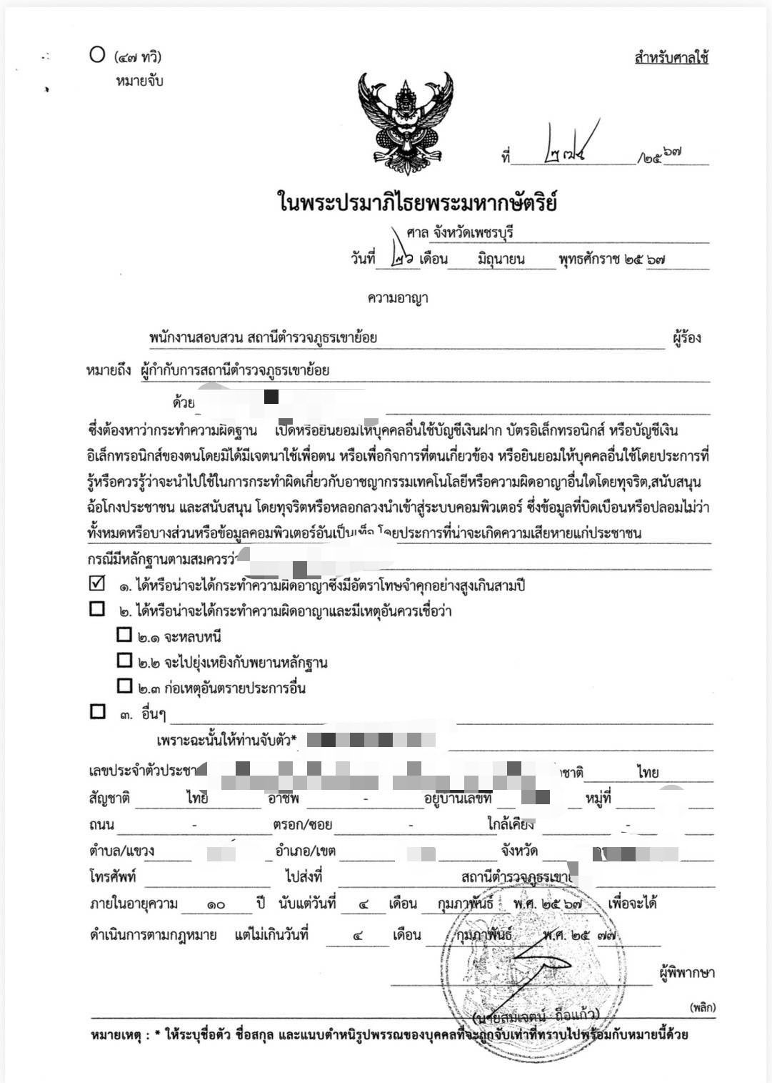 เหตุหลอกขายสินค้าออนไลน์ 12 พฤศจิกายน 2568 โดย adm_khaoyoi adm_khaoyoi / งานสืบสวน ขอรายงานเหตุหลอกขายสินค้าออนไลน์วันที่ ( 11 พ.ย. 2568 )โดยการอำนวยการสั่งการของพ.ต.อ.ธิป เข่งคุ้ม ผกก.สภ.เขาย้อย,พ.ต.ท.พรม แก้วพรายตา รอง ผกก.สส.ฯสั่งการให้พ.ต.ต.นิติธร แตงอวบ สว.สส.สภ.เขาย้อยพร้อมชุดสืบสวนทำการจับกุมผู้ต้องหา 2 ราย1. นาย A อายุ 46 ปี หลอกขายสินค้า(ไม้แปรรูป) สามารถจับกุมได้ที่ จ.สุราษฎร์ธานี2. นาย B อายุ 25 ปี หลอกขายสินค้า(กล้องโกโป) สามารถจับกุมได้ที่ จ.นครศรีธรรมราชนำตัวส่งพนักงานสอบสวนดำเนินการตามกฏหมาย
