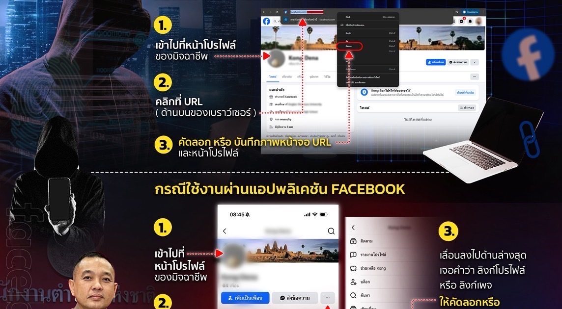 สำนักงานตำรวจแห่งชาติ แนะนำวิธีเก็บ URL เฟซบุ๊กมิจฉาชีพ ให้สามารถใช้เป็นหลักฐานในการดำเนินคดี