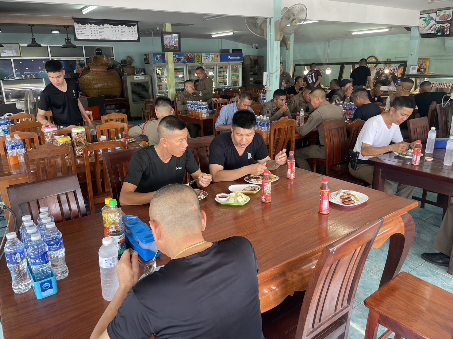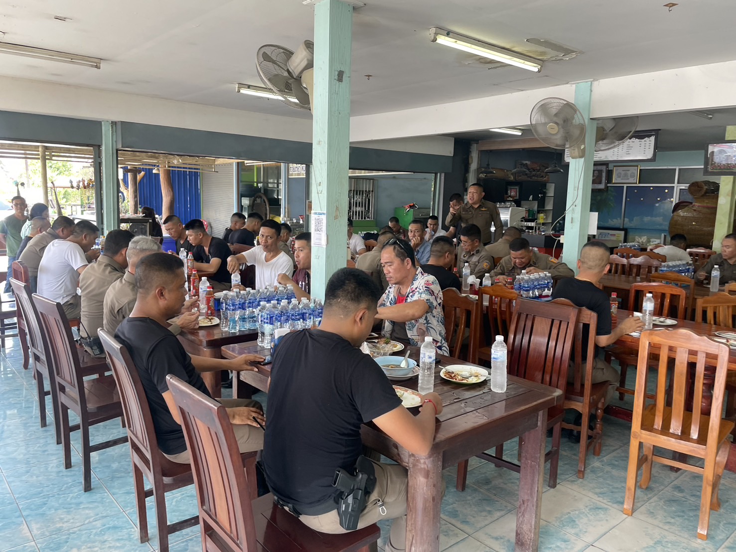 พ.ต.อ.ธิป เข่งคุ้ม ผกก.สภ.เขาย้อย, พ.ต.ท.จำรอง จ้อยพึ่งพร รอง ผกก.ป.สภ.เขาย้อย, พ.ต.ต.ถาวร ผลลาภ สวป.ฯ, พ.ต.ต.เกรียงไกร กิ่งสามี สวป.ฯพร้อมเจ้าหน้าที่ ตำรวจ สภ.เขาย้อย ว.4 โครงการประกวดการฝึก บุคคลท่ามือเปล่า ท่าประกอบปาวุธ และ ยุทธวิธีตำรวจ ประจำปี 2567 พร้อมทั้งได้จัดเตรียม เครื่องดื่ม ขนมโดนัท กล้วยหอม และ ได้พาเจ้าหน้าที่ตำรวจ สภ.เขาย้อยรับประทานอาหารหลังจากประกวดเสร็จเรียบร้อย ณ ลานฝึก ภ.จว.เพชรบุรี
