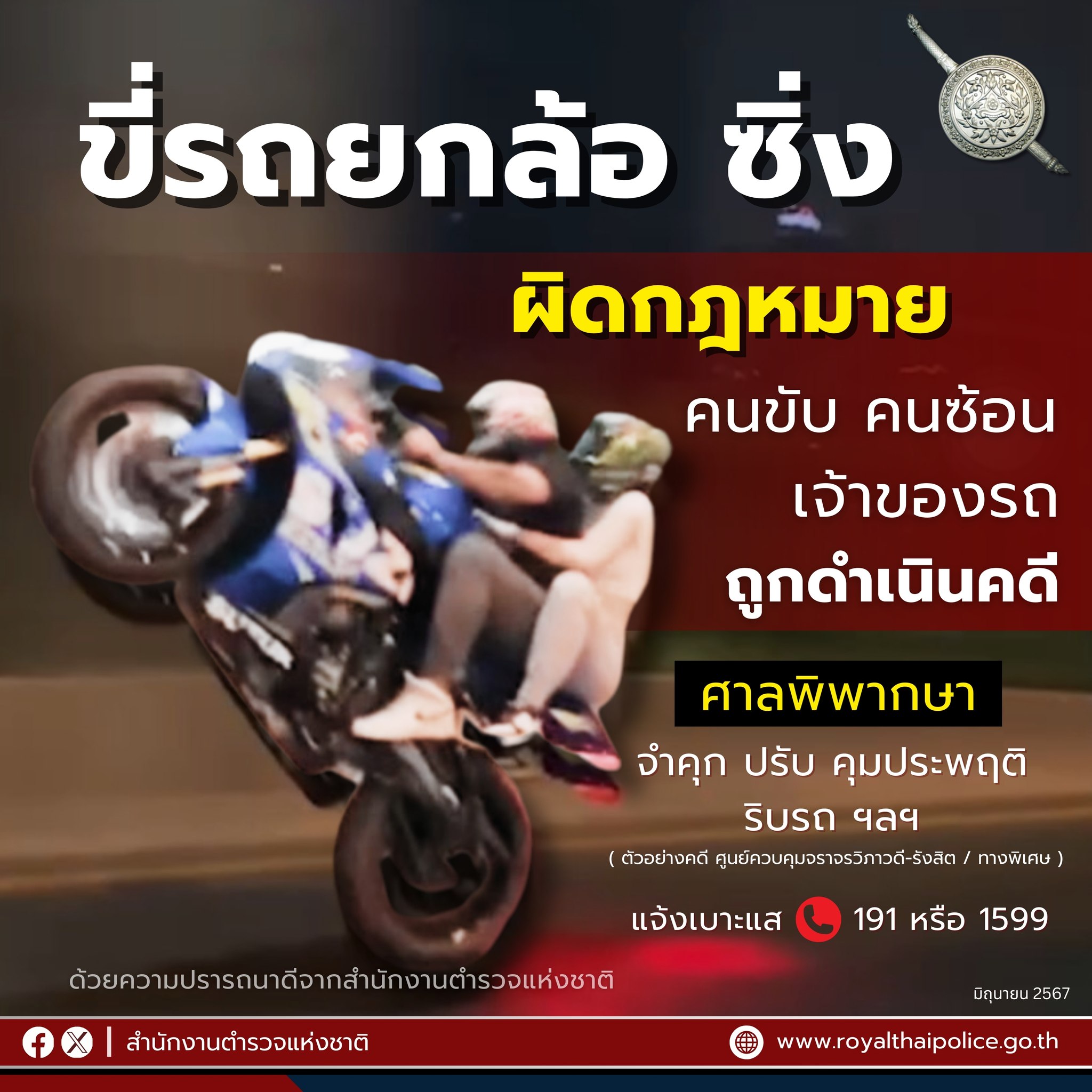 ผู้ช่วย ผบ.ตร. เตือนขับขี่จักรยานยนต์ยกล้อซิ่ง ผิดกฎหมาย ล่าสุดศาลสั่งปรับหนัก ริบรถบิ๊กไบค์ยกแก๊ง.พ