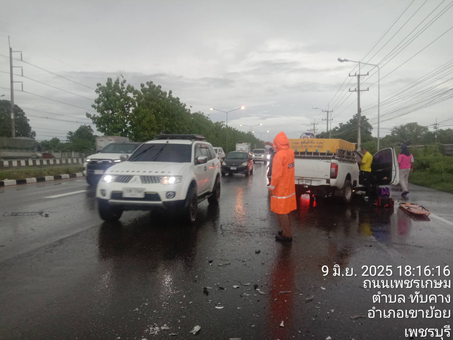 วันที่ 9 มิ.ย. 68 เวลา 18.16 น. รับแจ้งเหตุ ว.40 กระบะ+เก๋ง หน้าโรงงานเพชรสยาม ก่อนถึงโรงงานโกรเบส เ