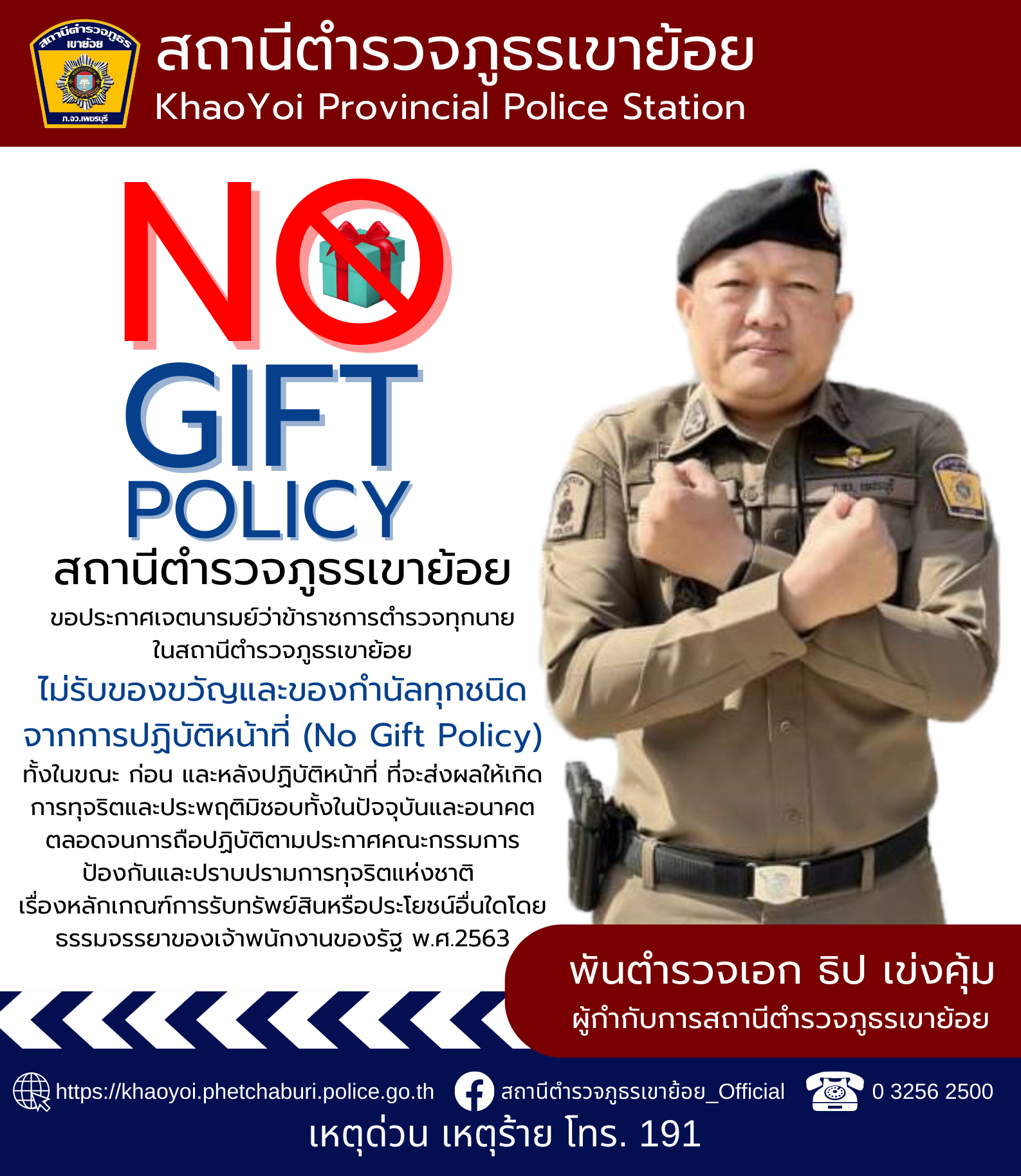 สภ.เขาย้อย ประกาศ นโยบาย “งดรับ งดให้” (No Gift Policy) ปี 2568