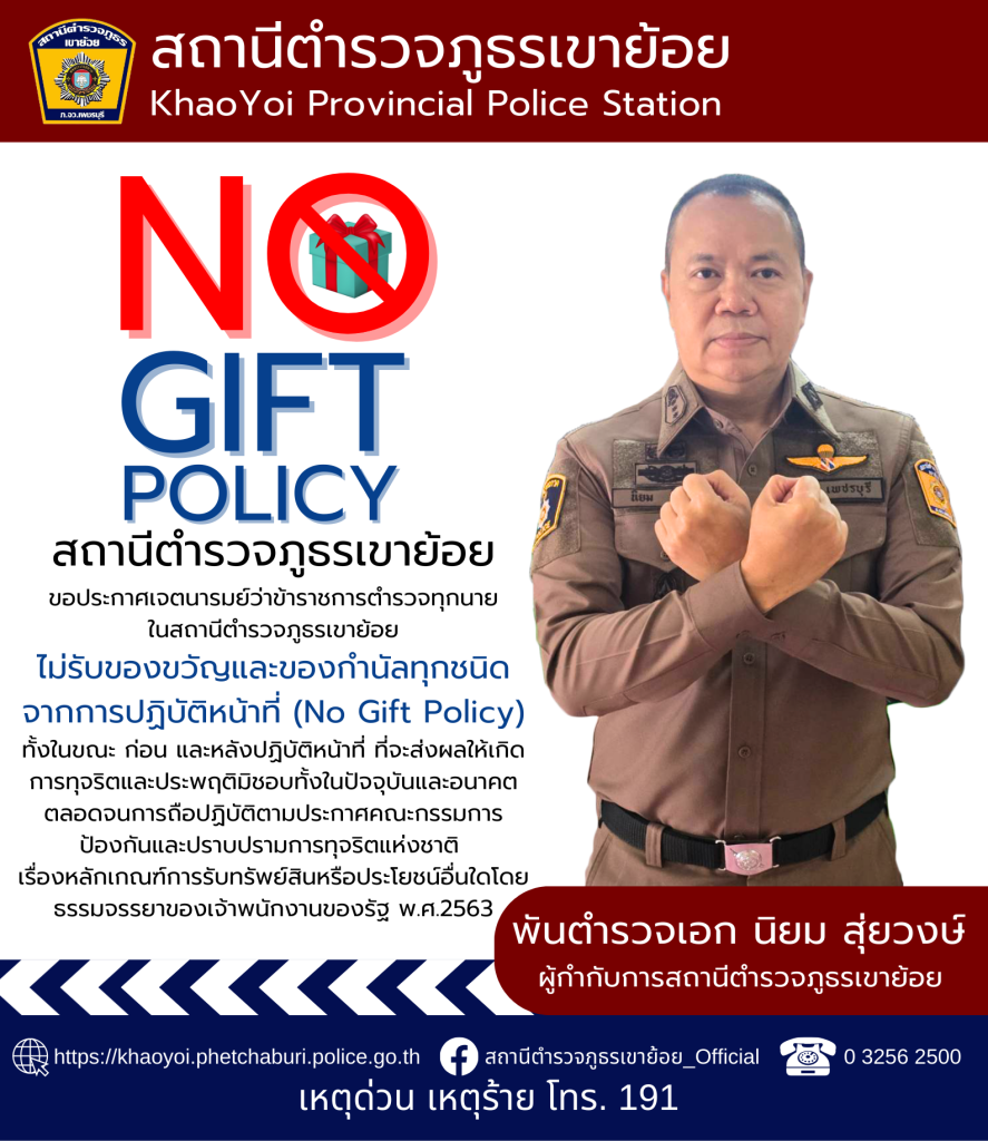 สภ.เขาย้อย ประกาศ นโยบาย “งดรับ งดให้” (No Gift Policy) ปี 2568