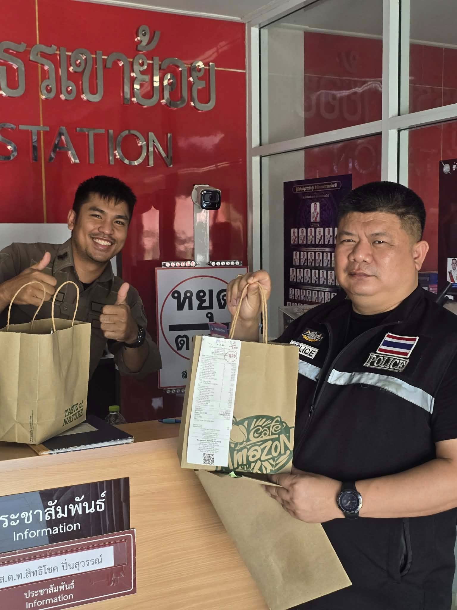 พ.ต.อ.นิยม สุ่ยวงษ์ ผกก.ฯ นำกาแฟ Amazon เลี้ยงแก่เจ้าหน้าที่ตำรวจ สภ.เขาย้อย เพื่อเป็นขวัญและกำลังใจในการปฎิบัติหน้าที่
