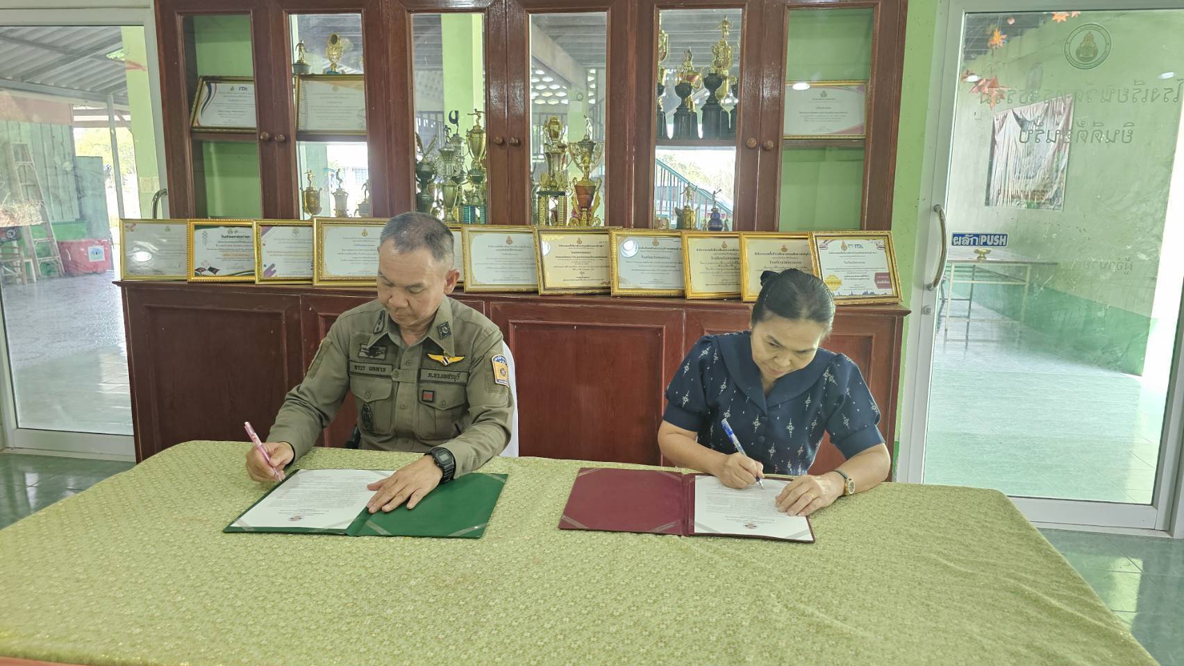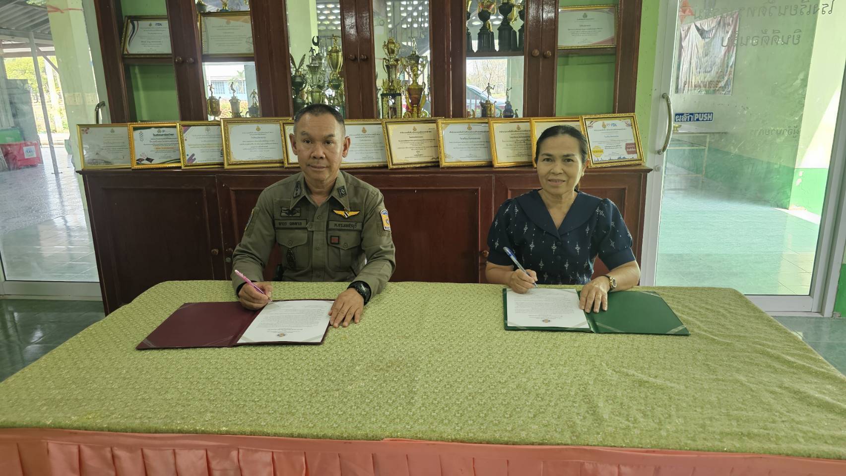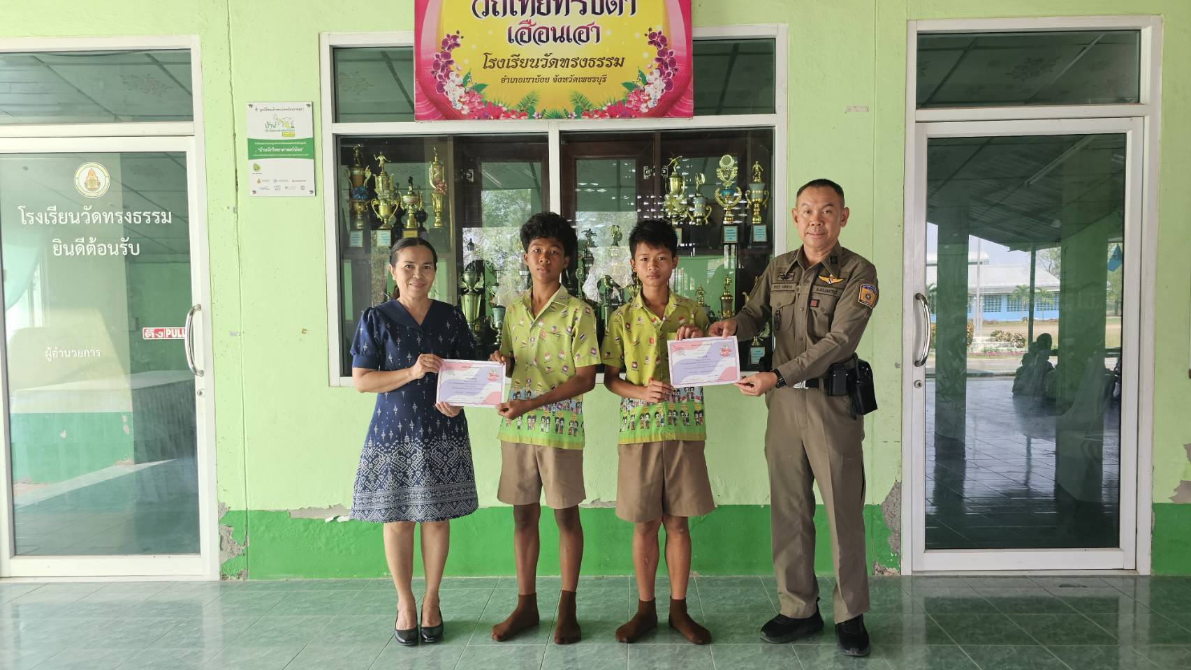 ว.4 โครงการ Stop Walk Talk กับ นางสาวปรานต์ณิชารีย์ ธนาบุญฤทธิ์ รักษาการผู้อำนวยการโรงเรียน วัดทรงธรรม ทำ MOU ลงนามบันทึกความร่วมมือกับทางโรงเรียน เกี่ยวกับความปลอดภัยของสถานศึกษา และมอบใบประกาศ D.A.R.E.ให้กับเด็กนักเรียน เกี่ยวกับ การป้องกันยาเสพติด ความปลอดภัยสวัสดิภาพของนักเรียน และการป้องกันอาชญากรรมทางไซเบอร์ กับทางโรงเรียน